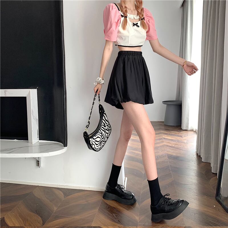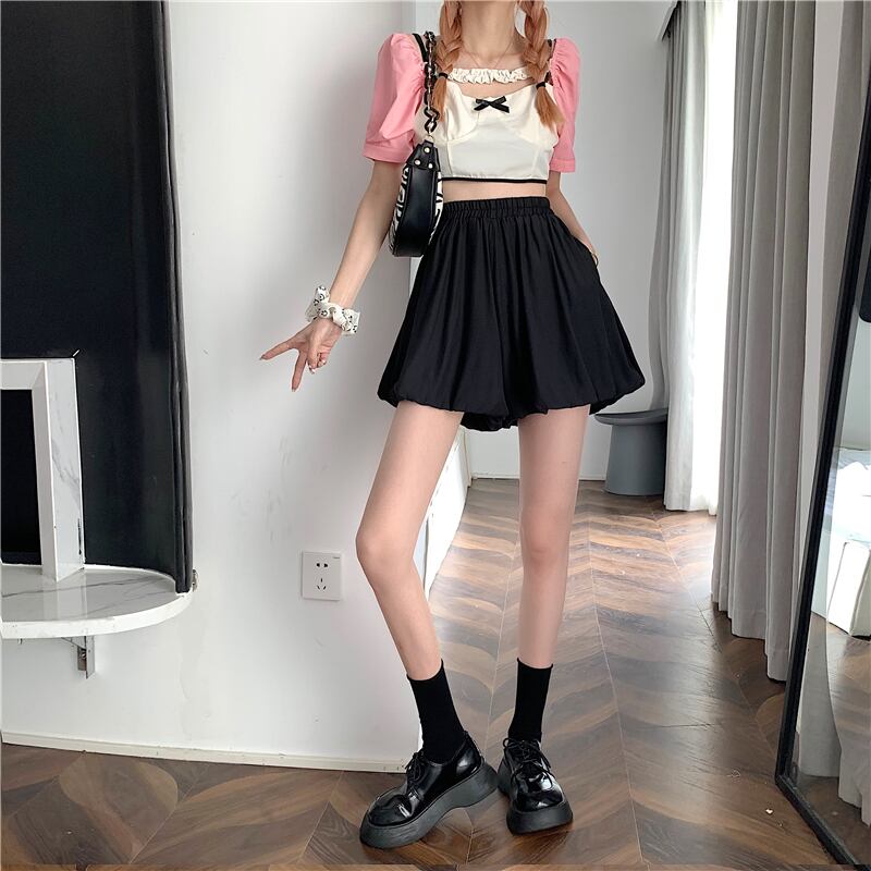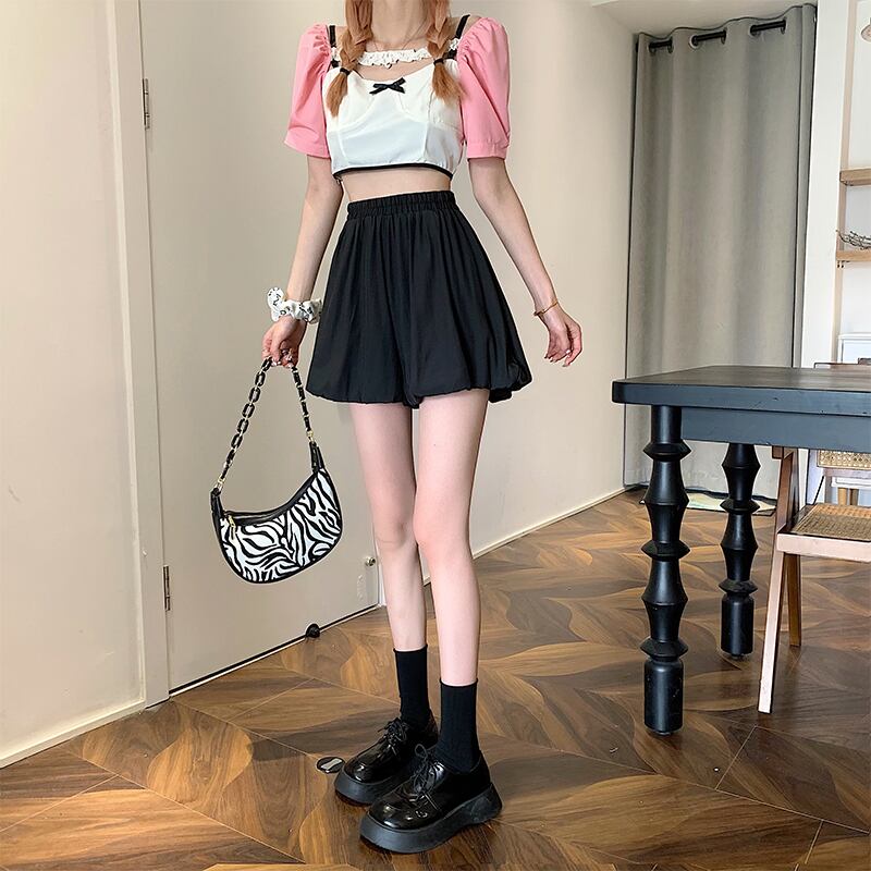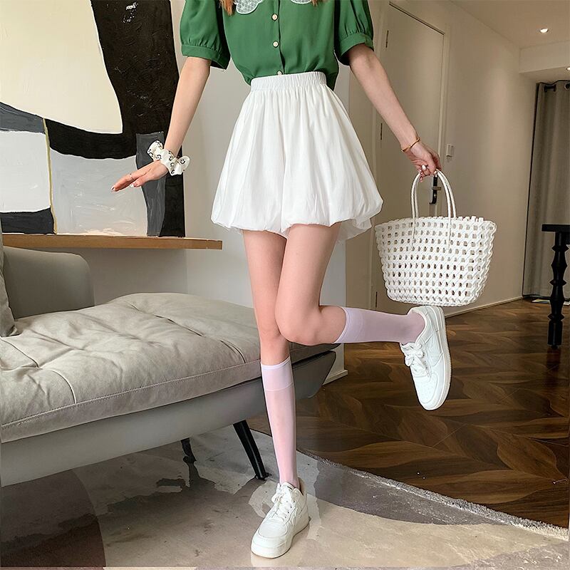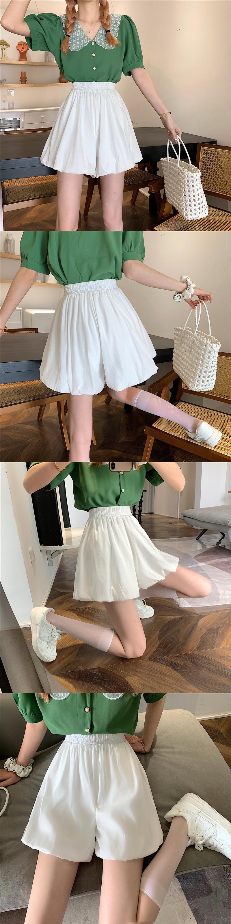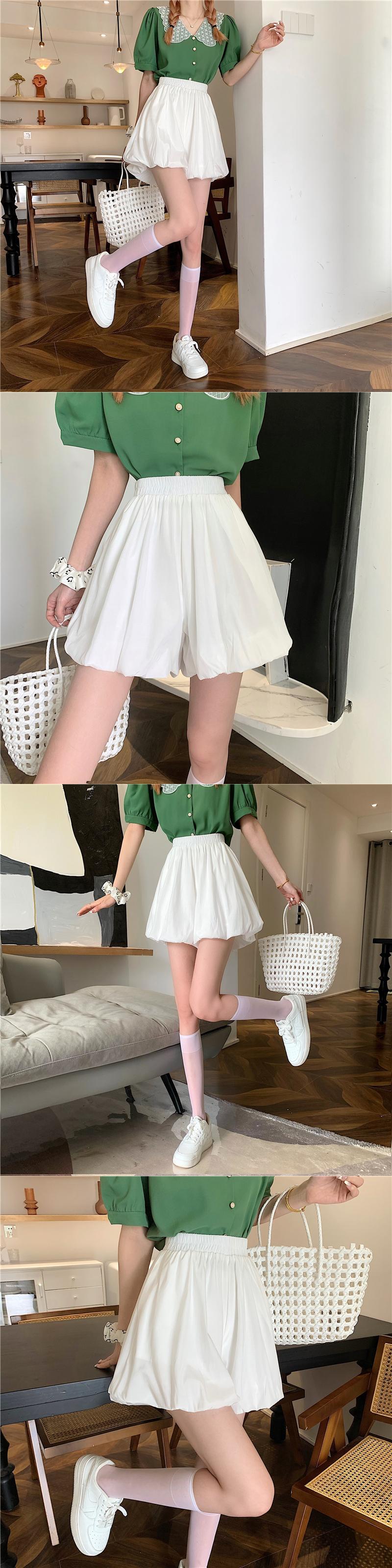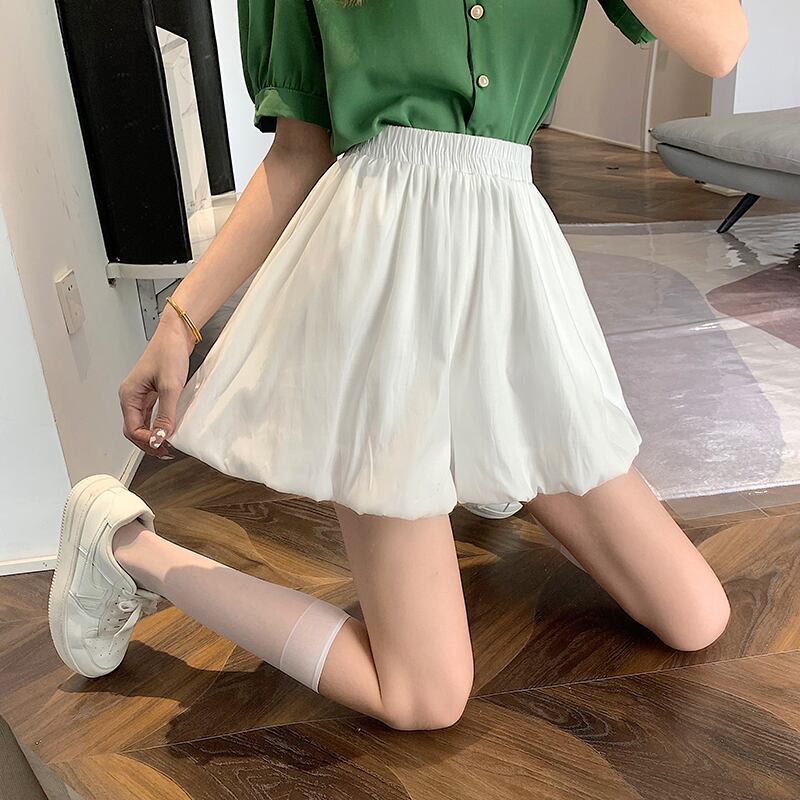 ふくらんでいる袴2022年夏の新しいハイウエストデザインの女性のニッチな薄い白いAラインカジュアルショーツ ハイウェスト ホワイト サマー 夏物 ブルマー 7460014464620102 | framboise21