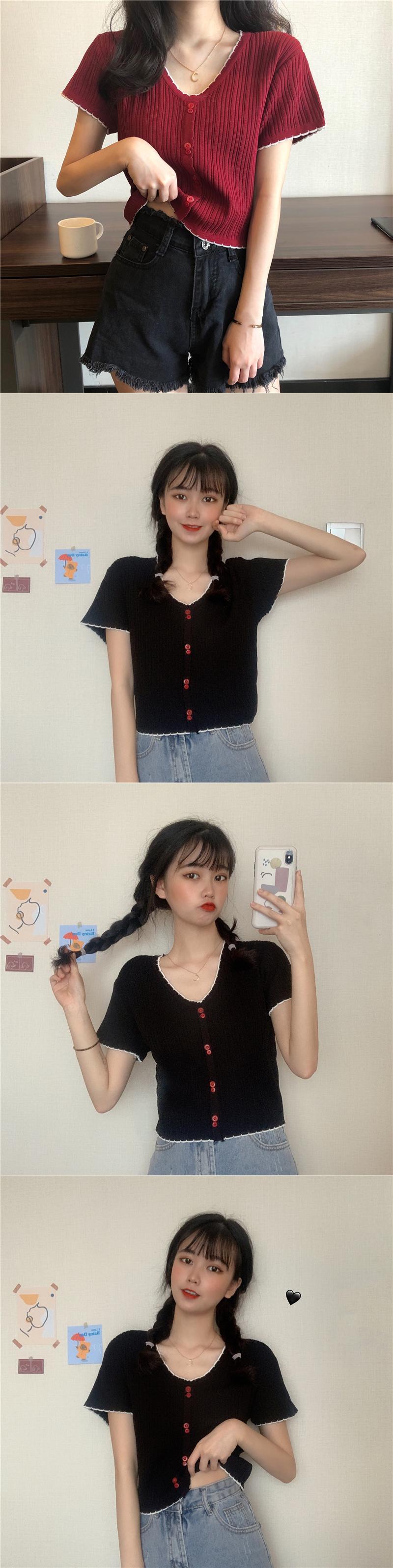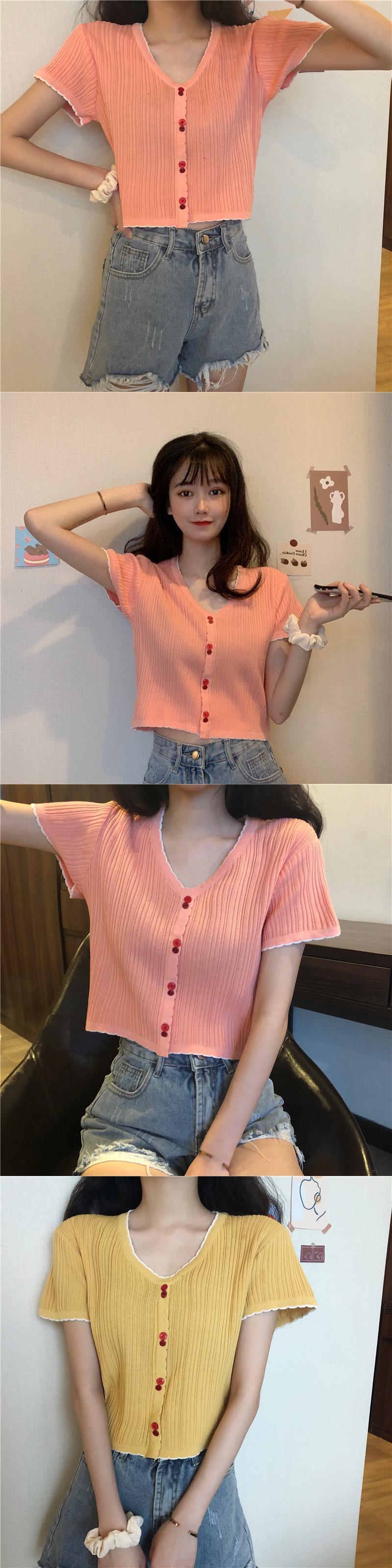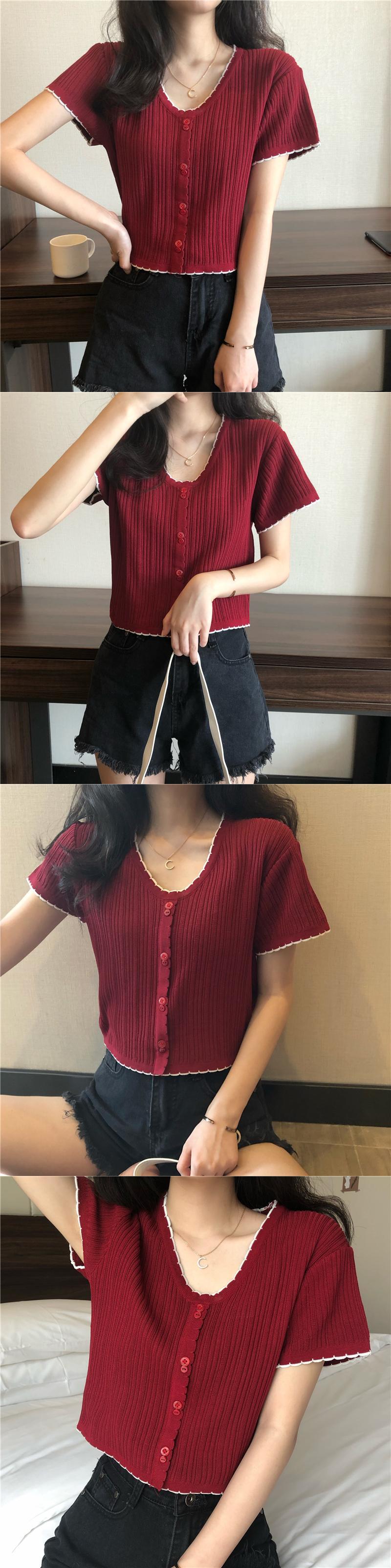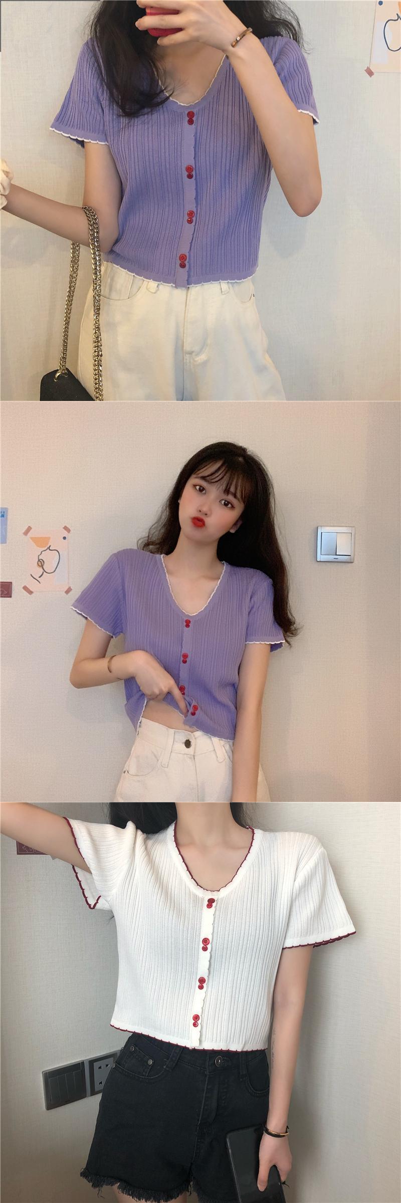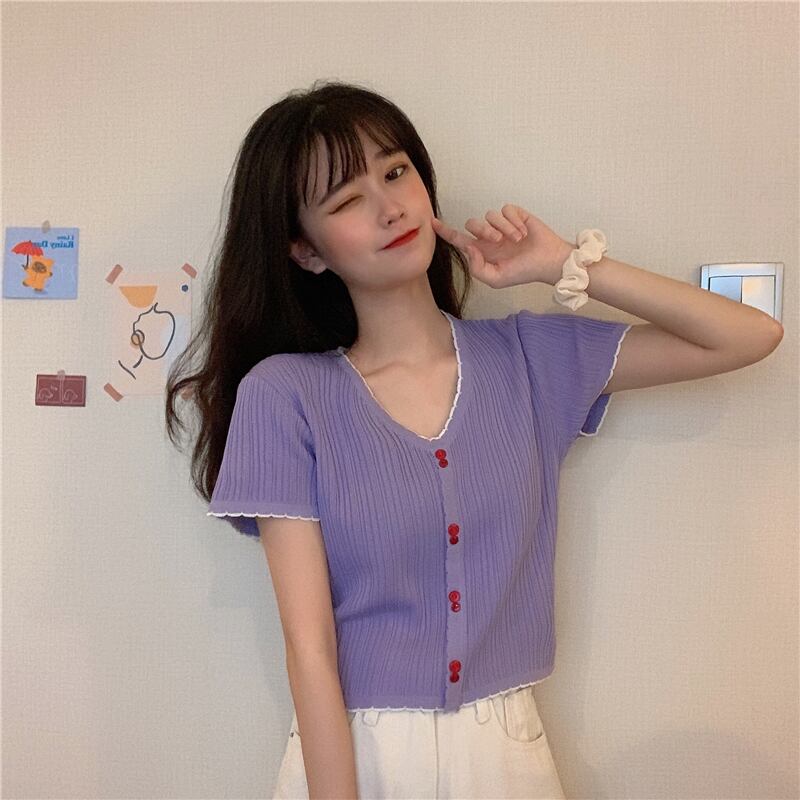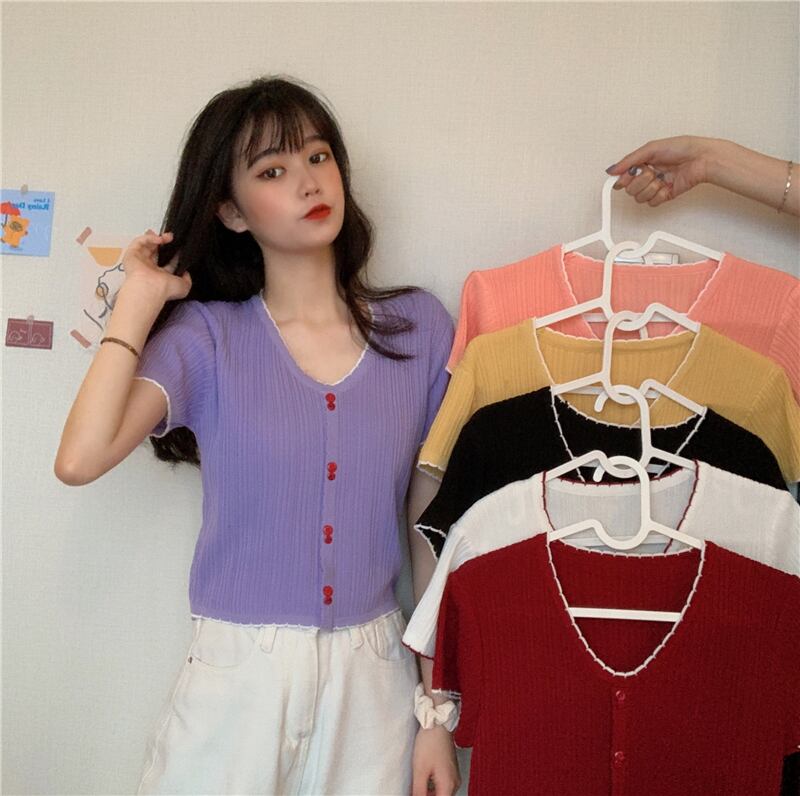 タイドブランド2022夏新作Vネックハイウエストショートハイエンドトップレディースアイスシルクニット半袖Tシャツレディース薄手 ハイウェスト サマー 夏物 7460013414149584 | framboise21