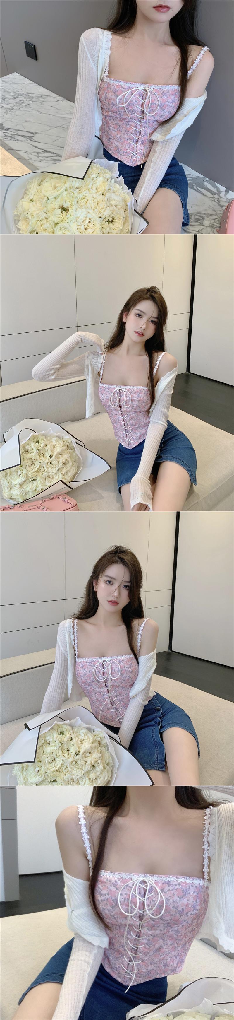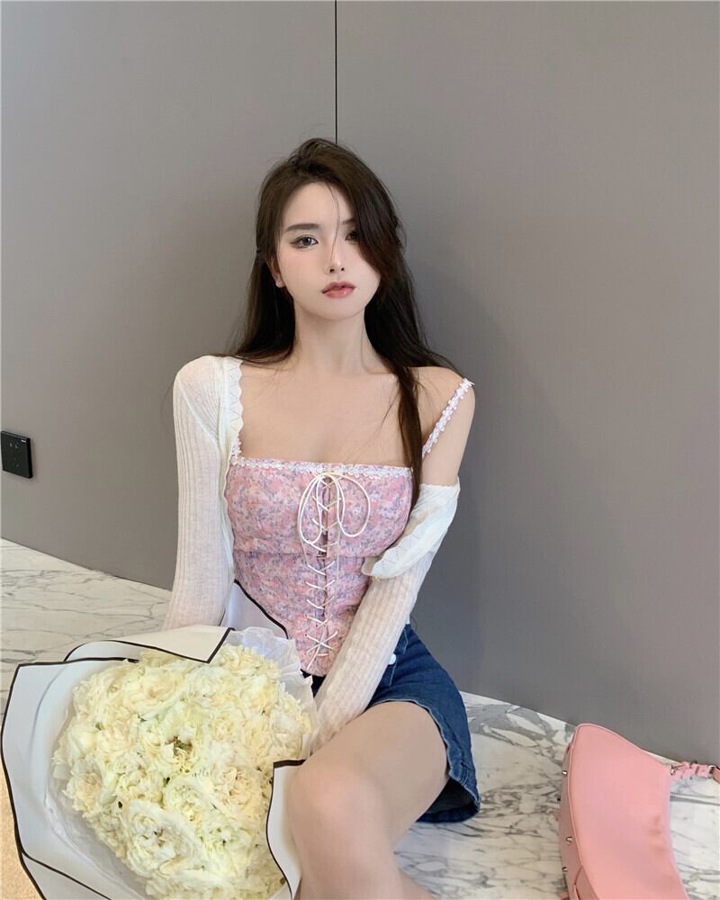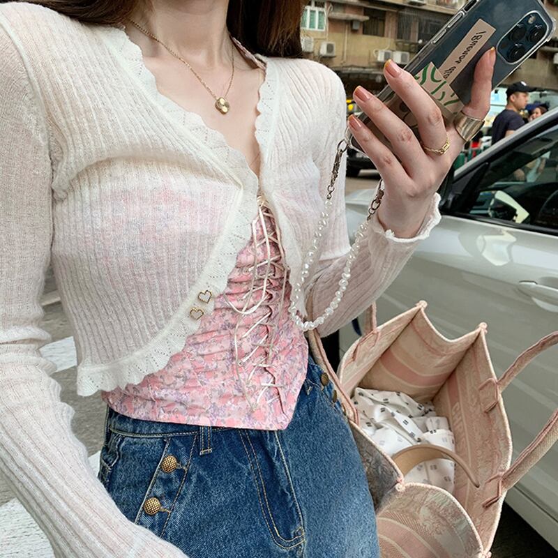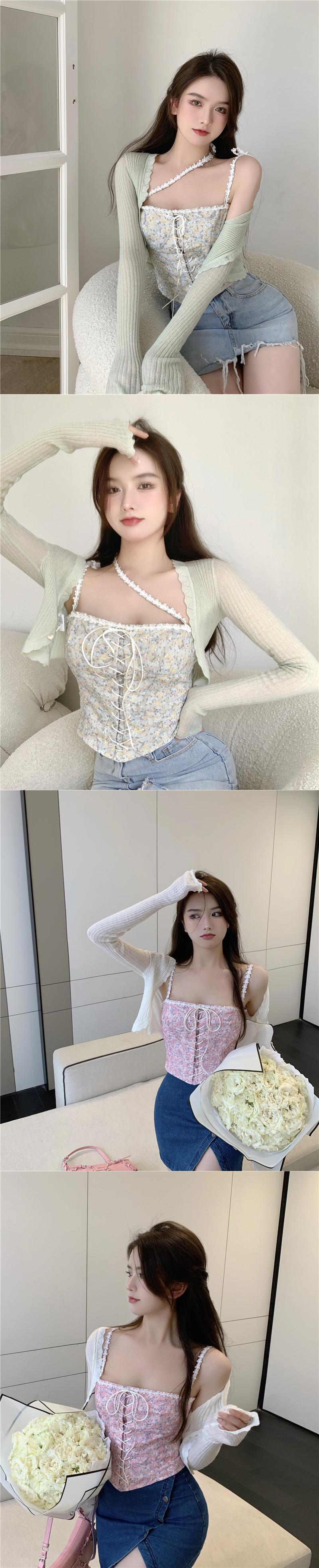 サンプロテクションブラウス、ショール、サマーコロケーション、サスペンダースカート、ニットカーディガン、レディースシントップ、スモールチョッキ 夏物 7460038303556819 | framboise21