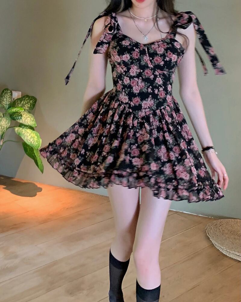 フランスのレトロな純粋な欲望甘くてスパイシーなスタイル初恋ティーブレイクフローラルドレス子供ウエスト気質夏2022新しい 大人ガーリー スウィート キュート カジュアル サマー 夏物 花柄 ピュア 7460034084413702 | framboise21