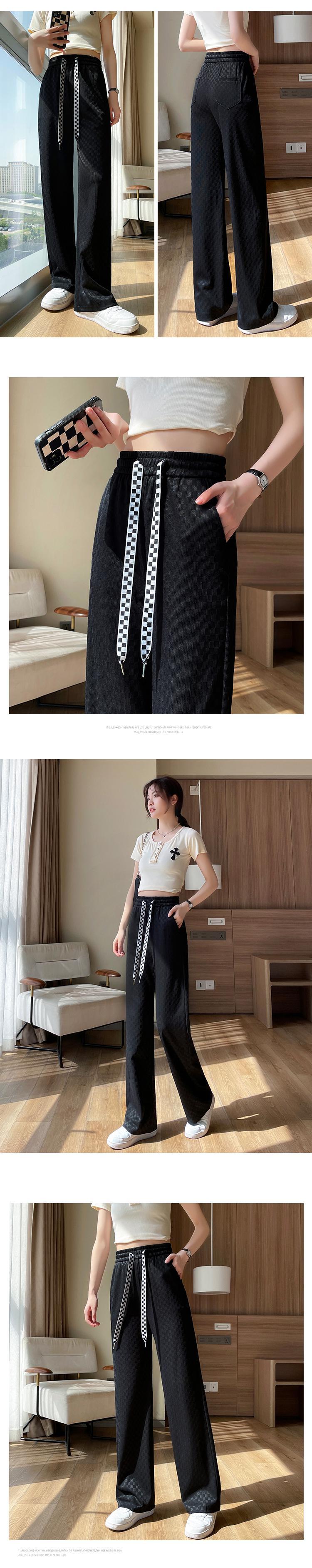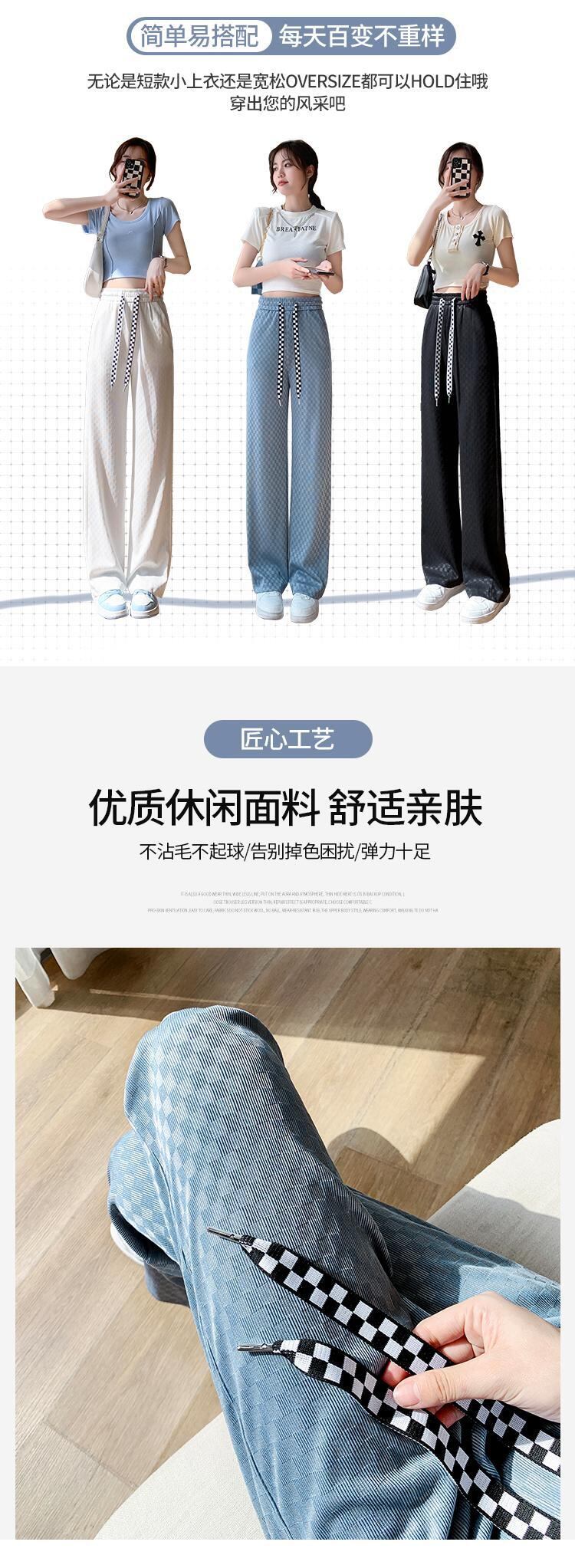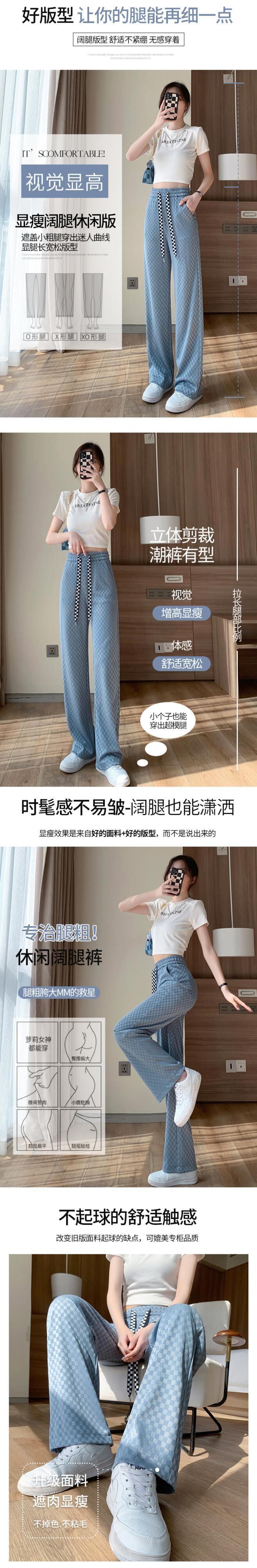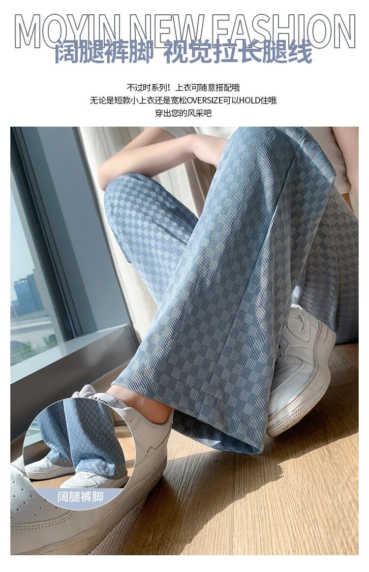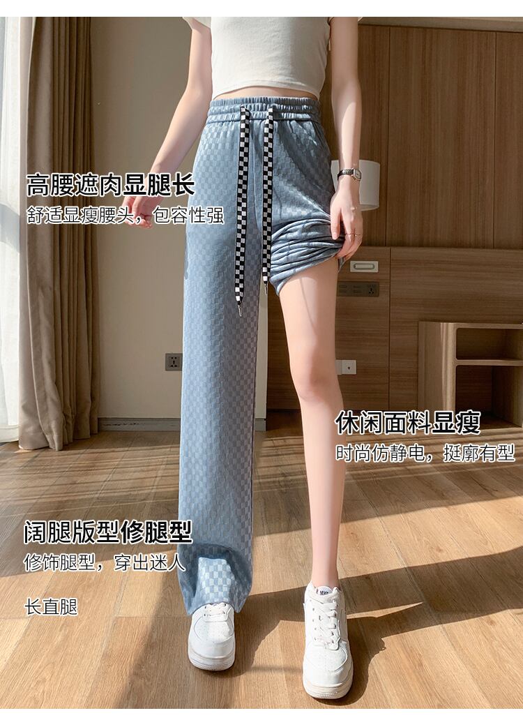 アイスシルクワイドレッグパンツ女子2022年夏新作ルーズストレートハイウエストドレープシンカジュアルチェック柄モップパンツ ハイウェスト サマー 夏物 7460033642784729 | framboise21