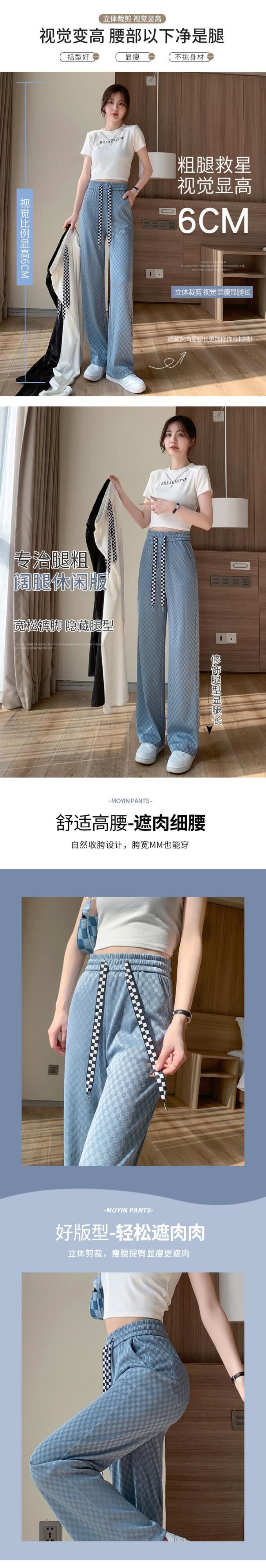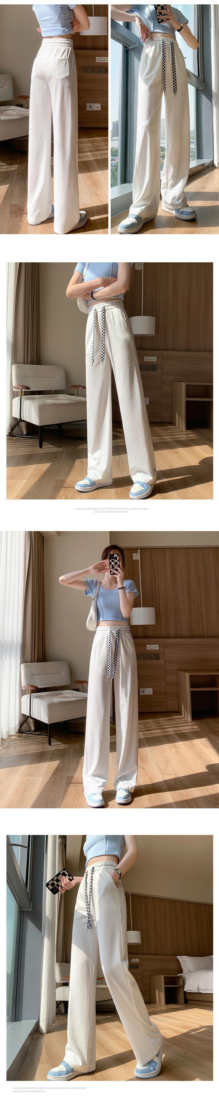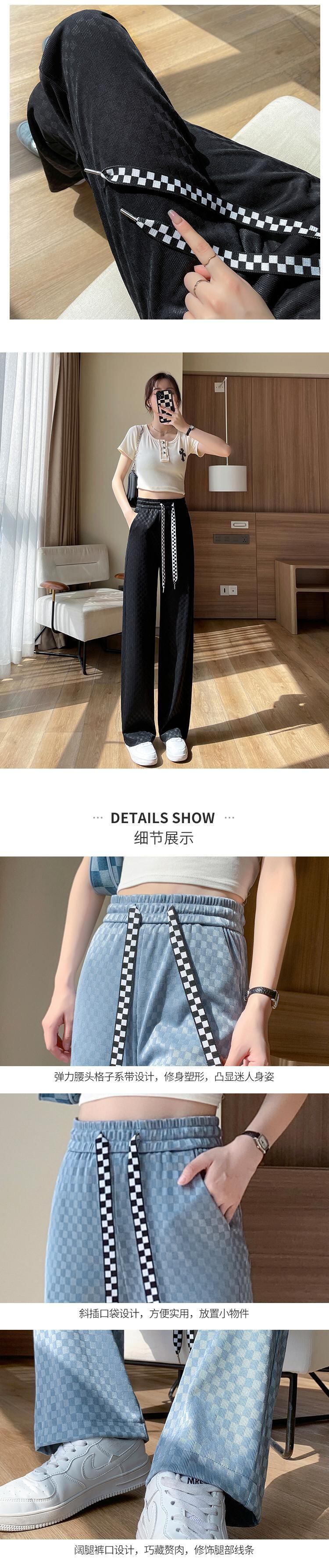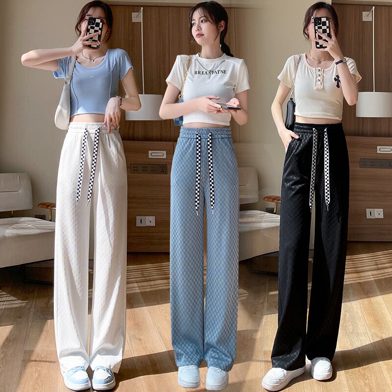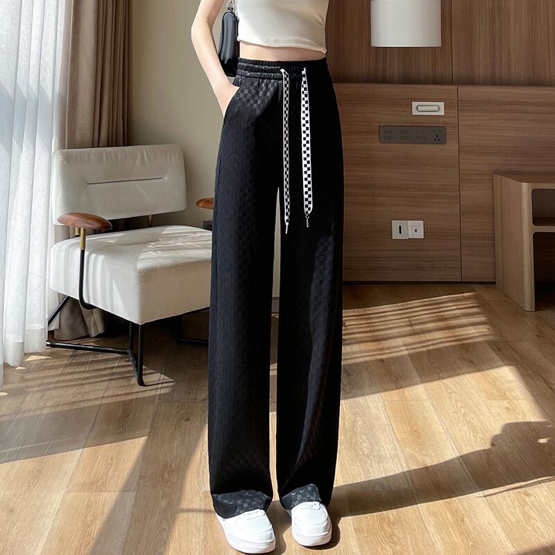 アイスシルクワイドレッグパンツ女子2022年夏新作ルーズストレートハイウエストドレープシンカジュアルチェック柄モップパンツ ハイウェスト サマー 夏物 7460033642784729 | framboise21