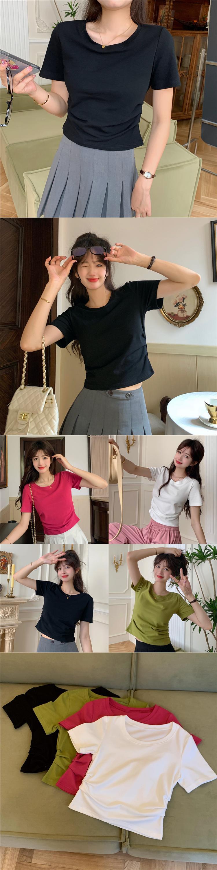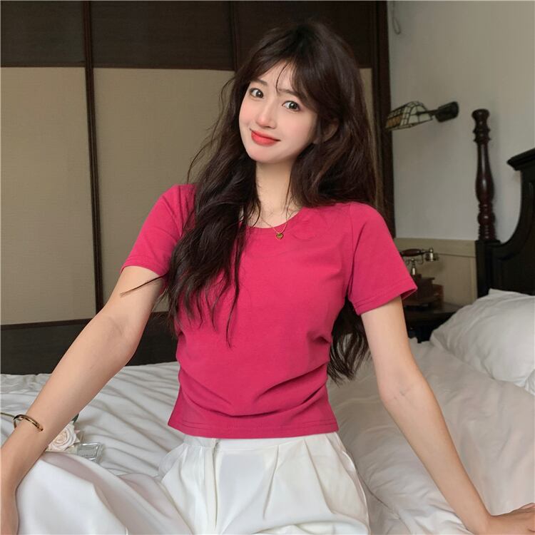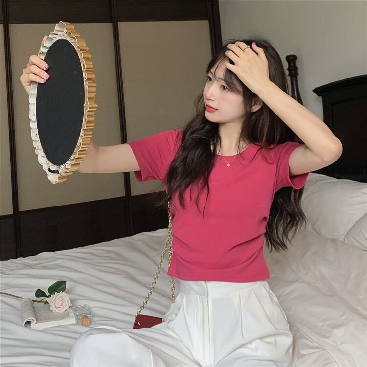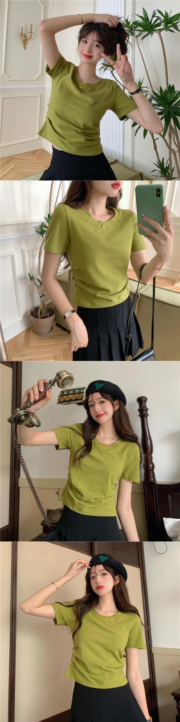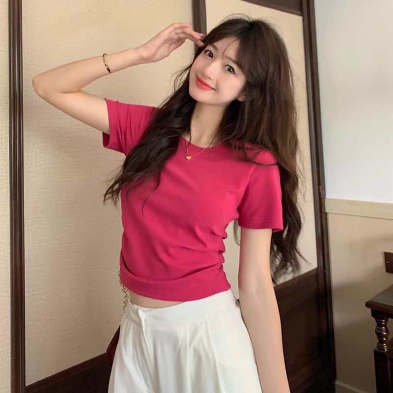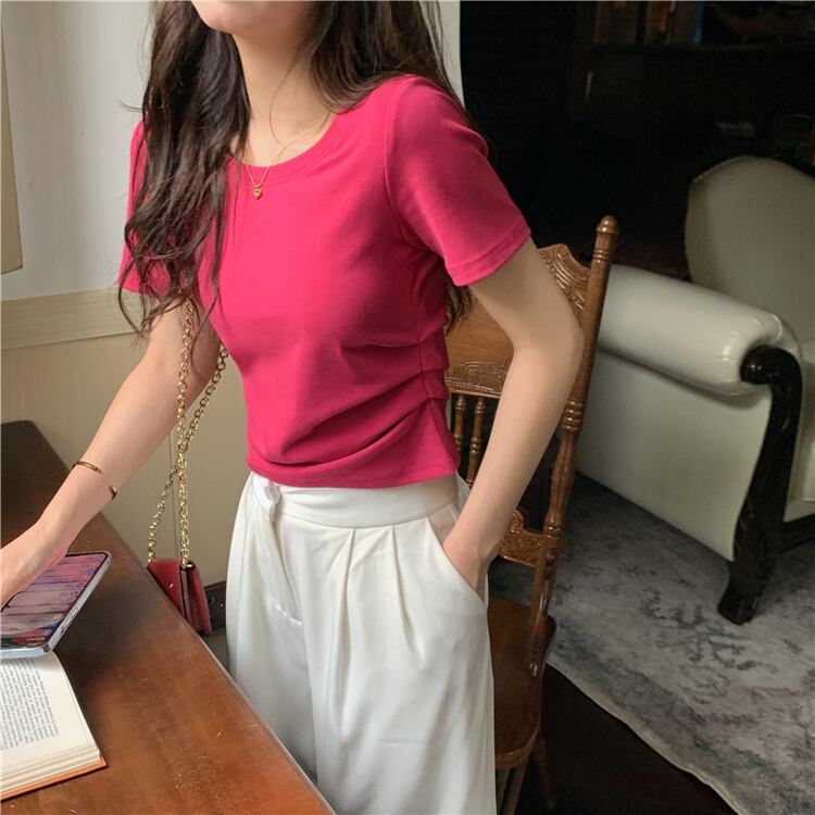 ショルダー半袖Tシャツ女性の2022年夏の新しい自己栽培、薄く、プリーツ、甘くてスパイシー、年齢を減らす、ハイウエストのショートトップ、イントレンド 大人ガーリー スウィート キュート カジュアル サマー 夏物 7460050007263751 | framboise21