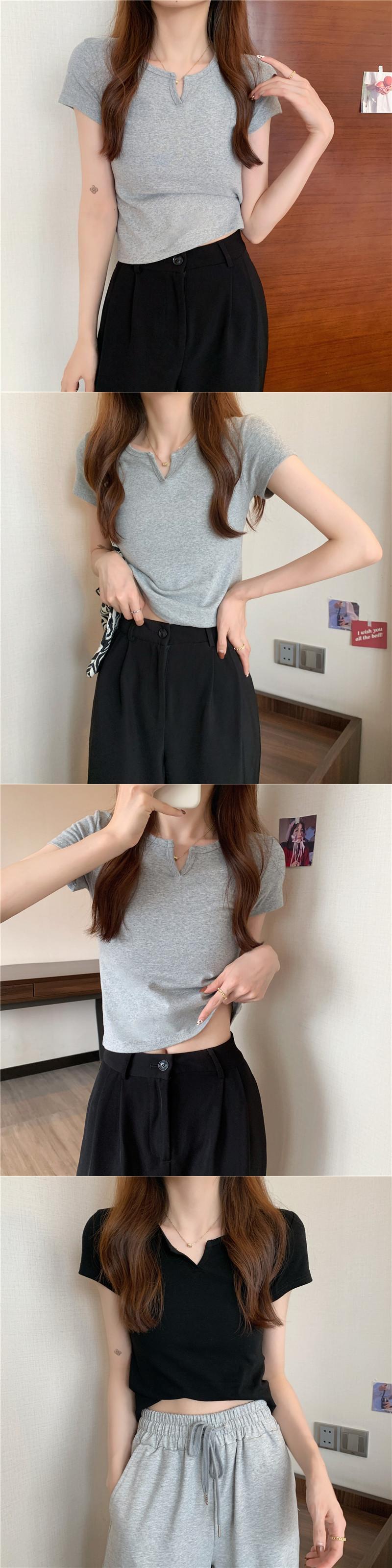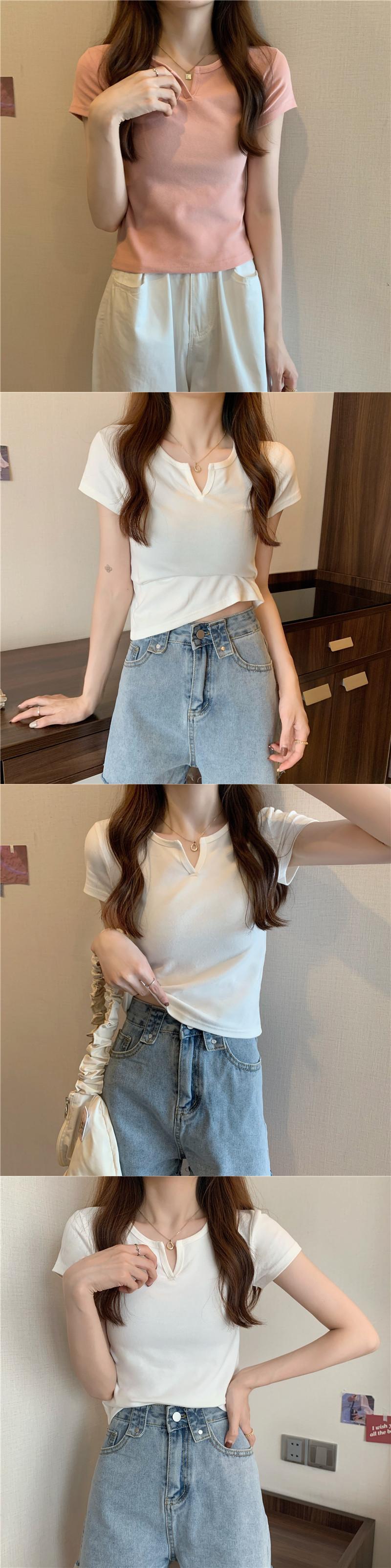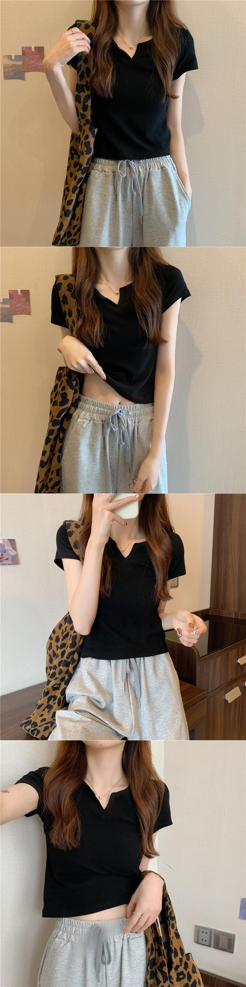 2022年新作フロントショルダーショートトップレディースサマーユニークデザインセンスニッチスウィートでスパイシーな半袖VネックTシャツ 大人ガーリー キュート カジュアル 夏物 746004005403947 | framboise21