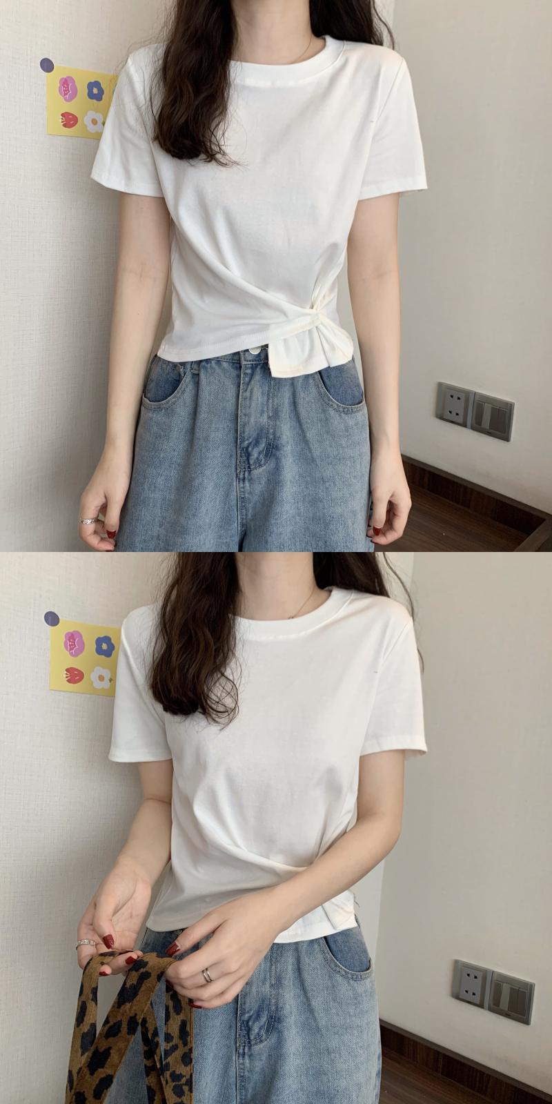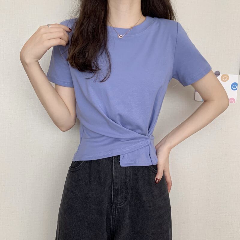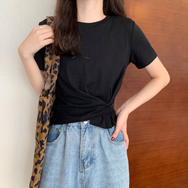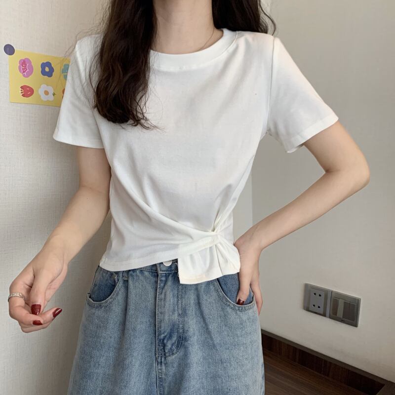 不規則な半袖Tシャツの女性の2022年の新しい夏の白い綿とハイウエストパンツのショートトップはニッチなデザインの感覚があります ホワイト コットン サマー 夏物 7460013125602791 | framboise21