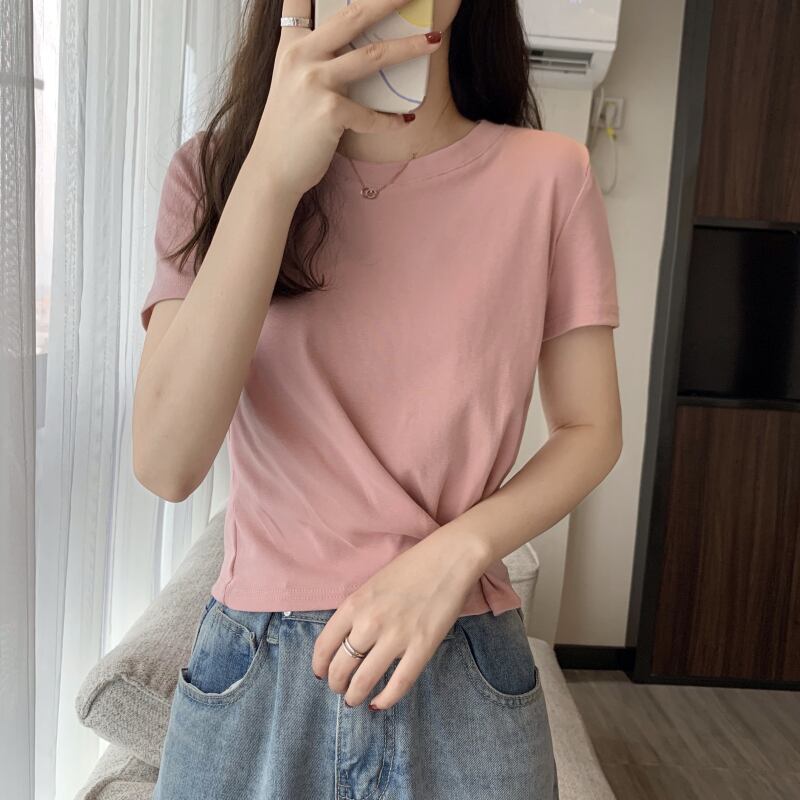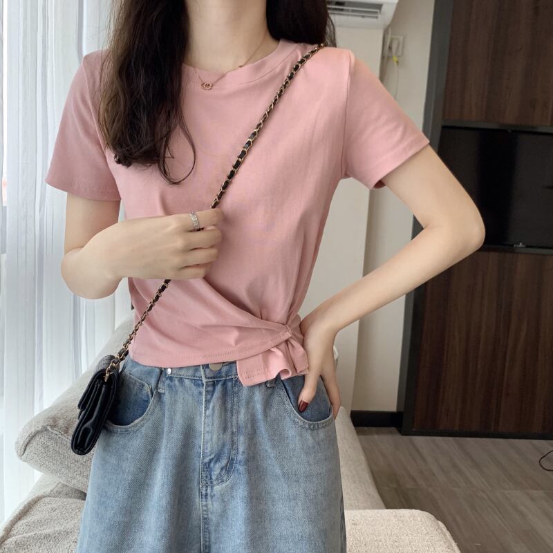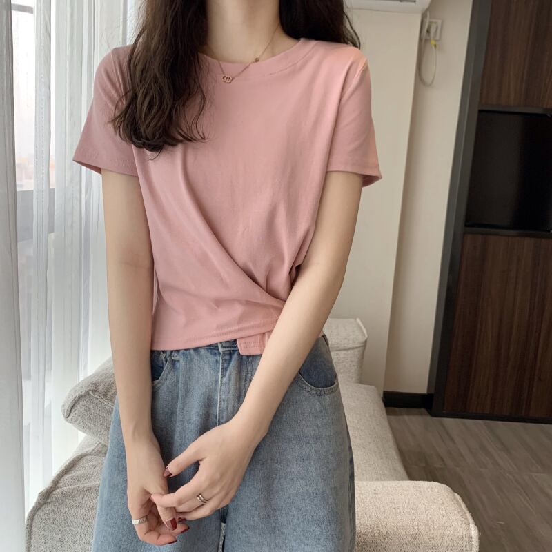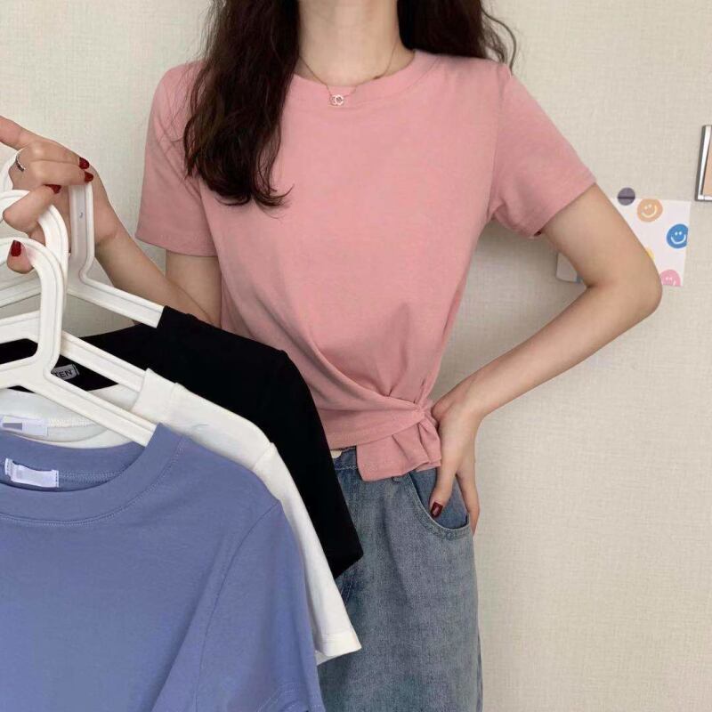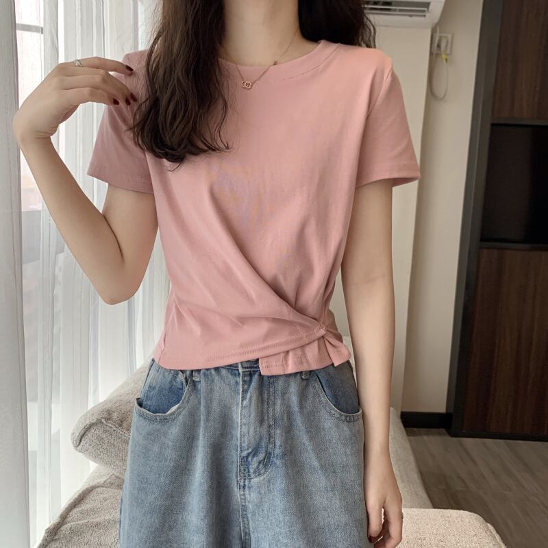 不規則な半袖Tシャツの女性の2022年の新しい夏の白い綿とハイウエストパンツのショートトップはニッチなデザインの感覚があります ホワイト コットン サマー 夏物 7460013125602791 | framboise21