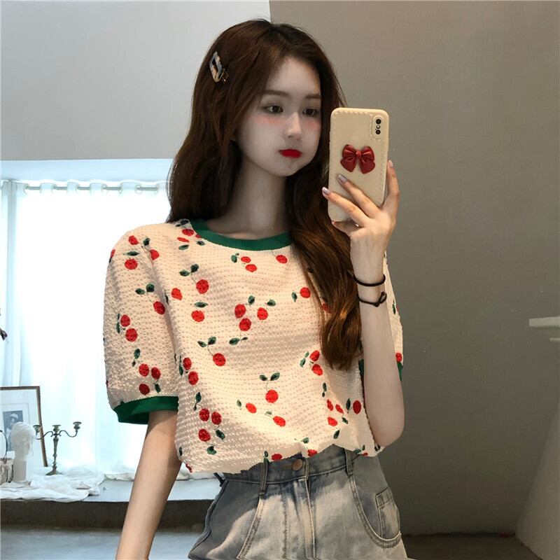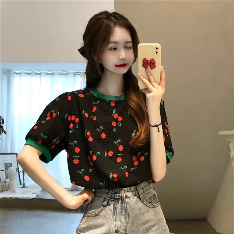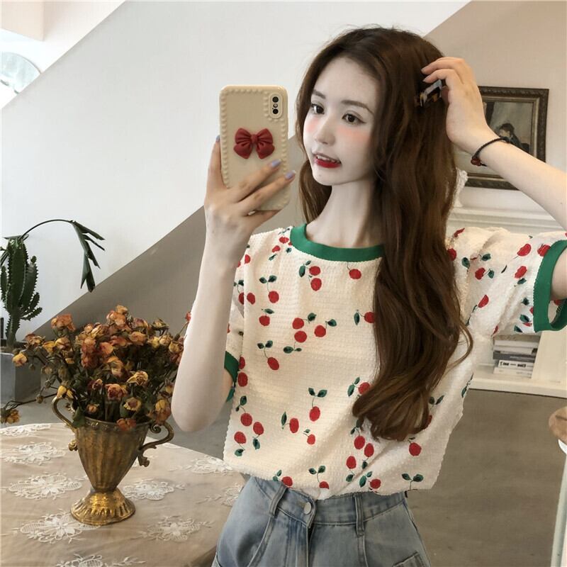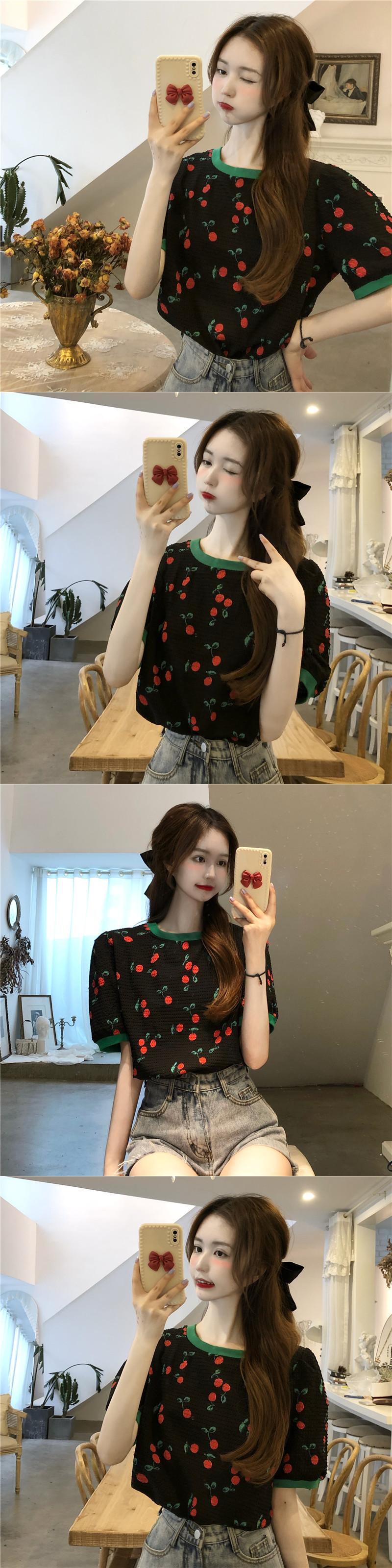 2022年新作スウィートスモールフレッシュチェリー半袖Tシャツレディースサマーデザインセンスニッチショートトップス 大人ガーリー キュート カジュアル 夏物 7460023475629298 | framboise21