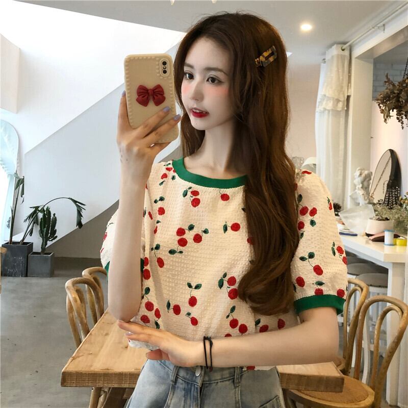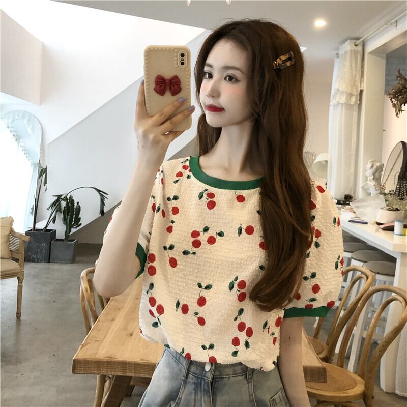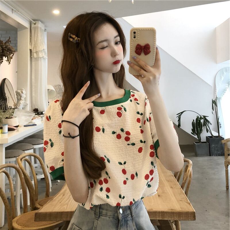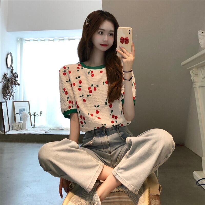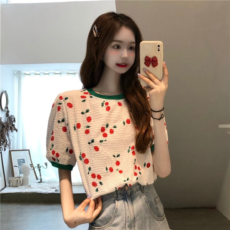 2022年新作スウィートスモールフレッシュチェリー半袖Tシャツレディースサマーデザインセンスニッチショートトップス 大人ガーリー キュート カジュアル 夏物 7460023475629298 | framboise21