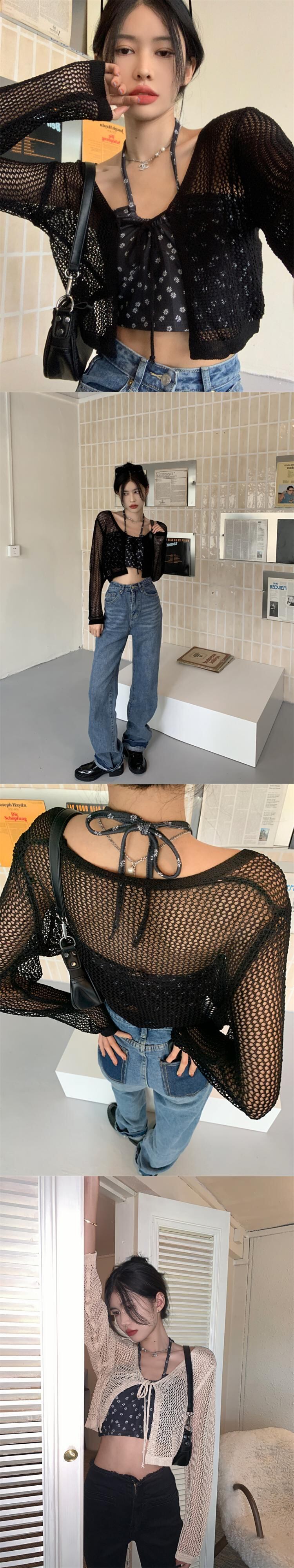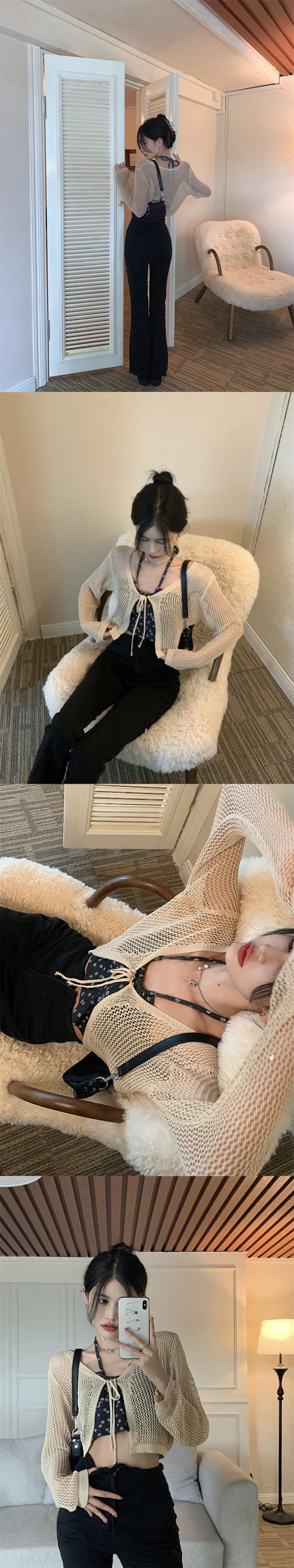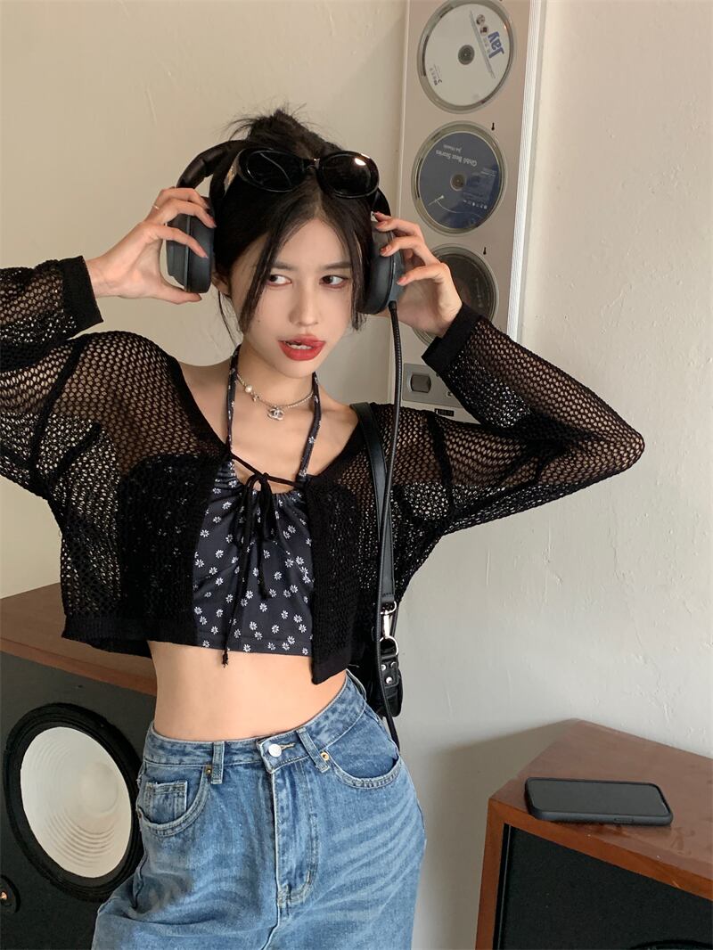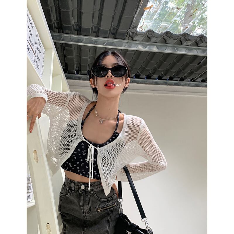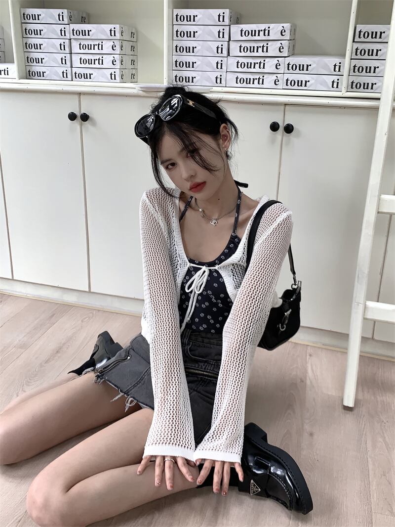 サンプロテクションカーディガンレディースサマー薄手ニットブラウスショートホローパースペクティブホワイトエアコンサスペンダー付きスモールコート 夏物 7460052268641165 | framboise21