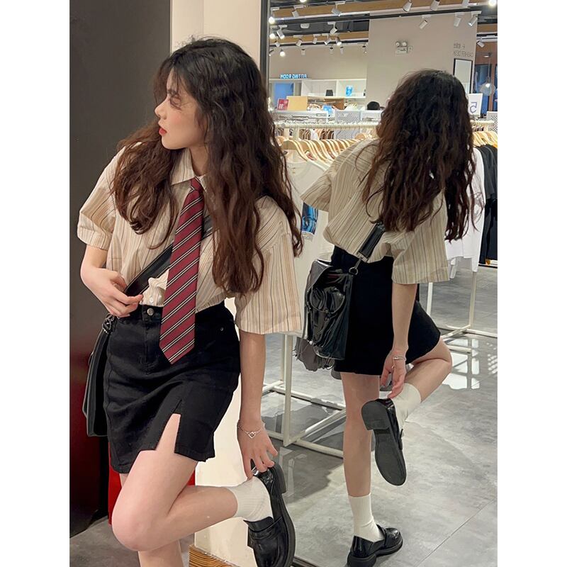 スタイルスーツ女性2022年夏新作ストライプ半袖シャツファッション甘くてスパイシーなバッグヒップショートスカートツーピースセット 大人ガーリー スウィート キュート カジュアル サマー 夏物 7460058966097875 | framboise21