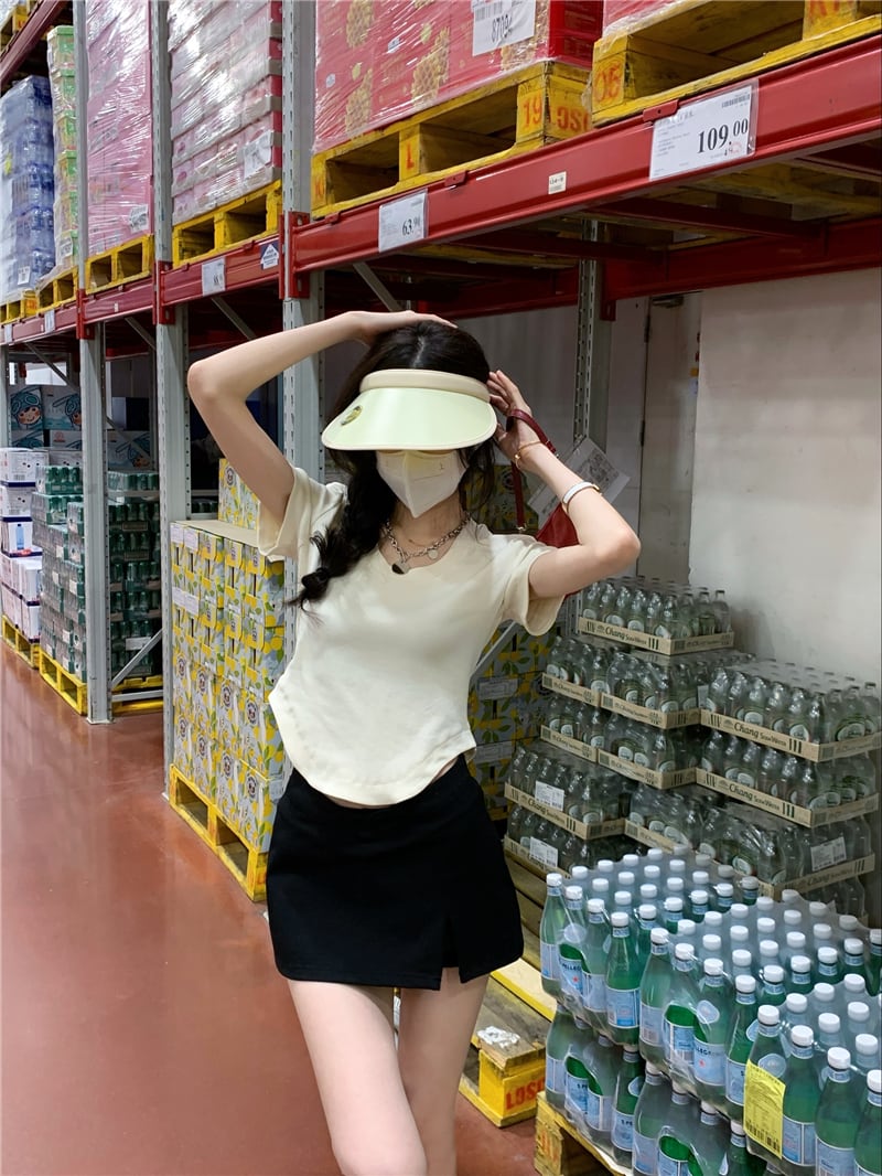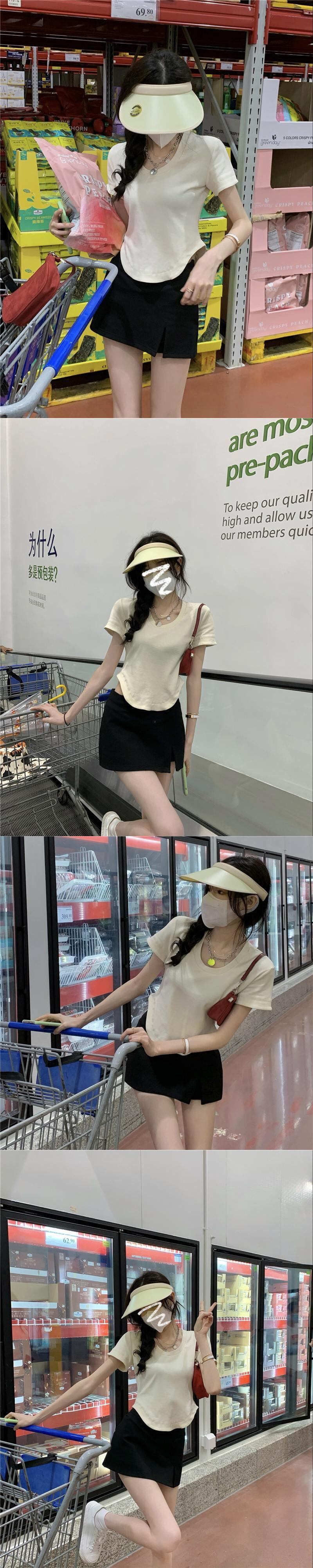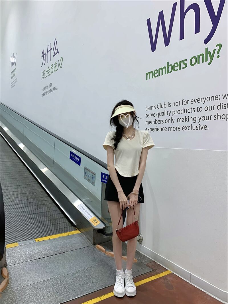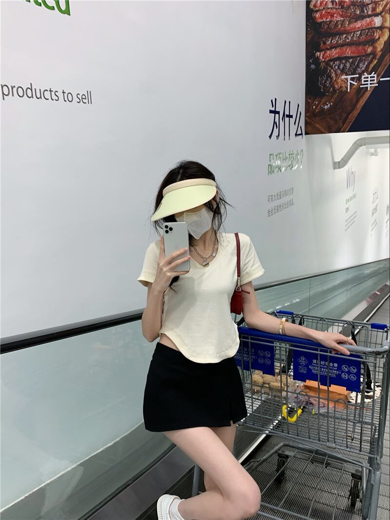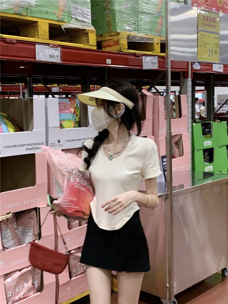 ショート半袖Tシャツレディースサマーデザインセンスニッチピュアデザイアスタイルイレギュラーハイウエストクロップトップインタイド ハイウェスト 夏物 7460023953823111 | framboise21
