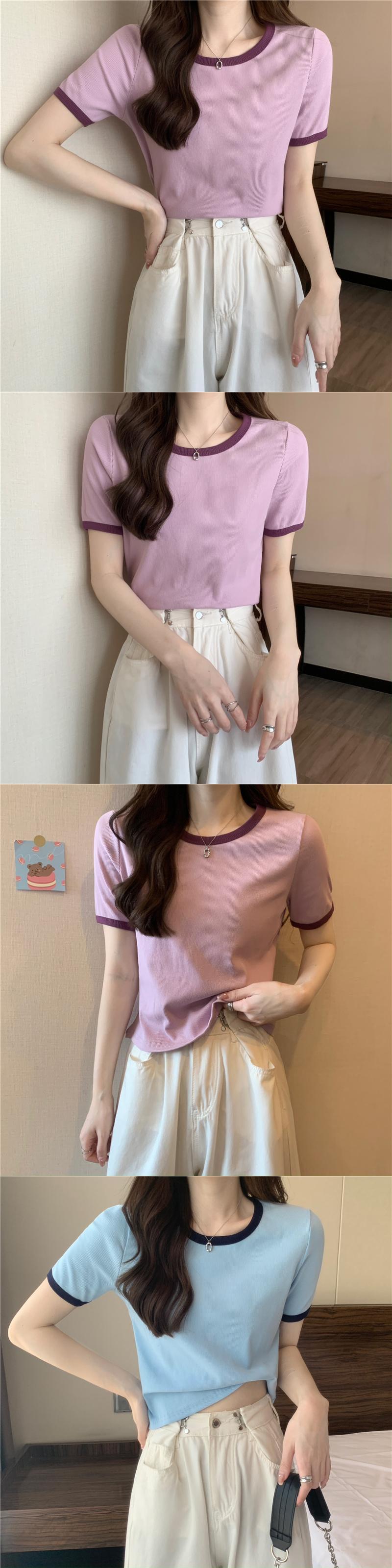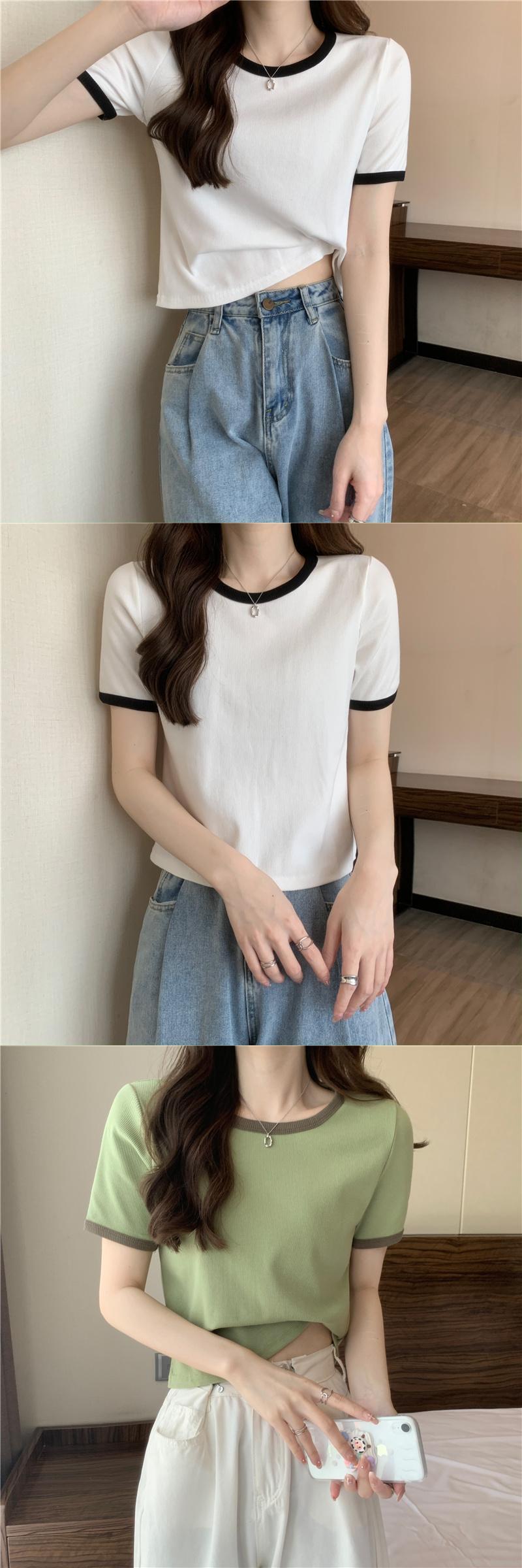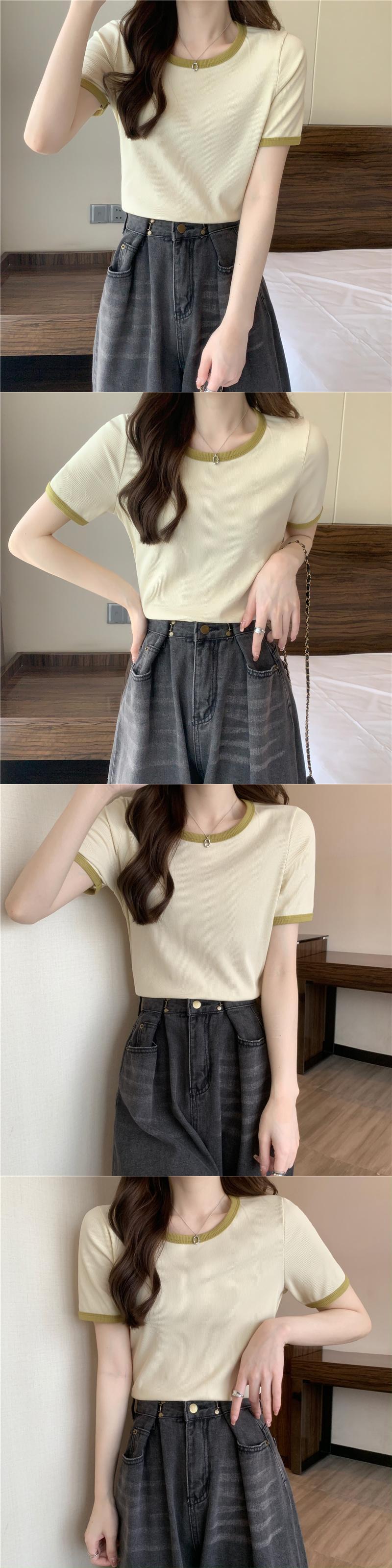 グリーンアイスシルクニットフロントショルダー半袖TシャツレディースサマーハイエンドカジュアルショートトップスリムフィットスリムTシャツ 夏物 7460068880864676 | framboise21