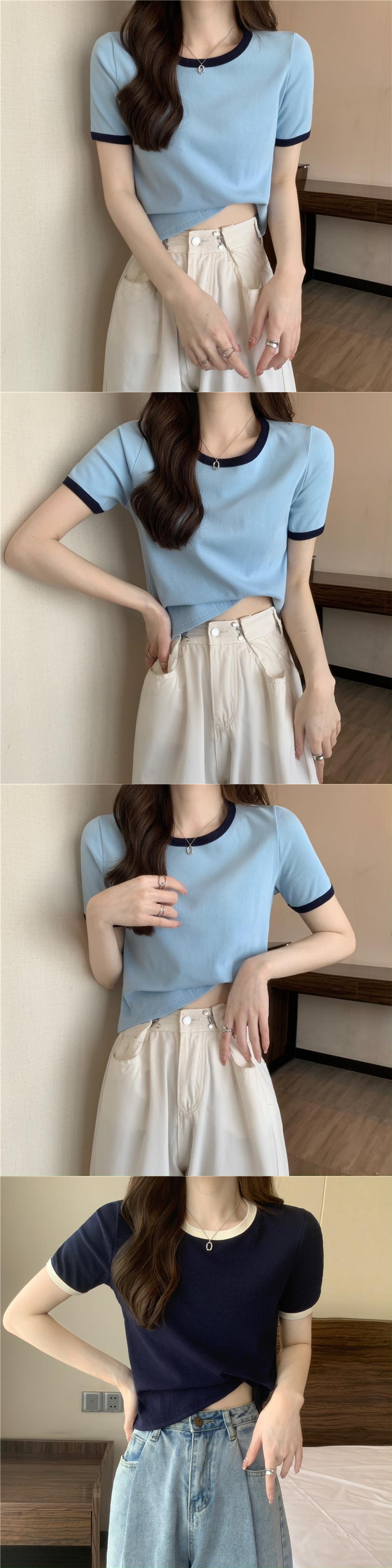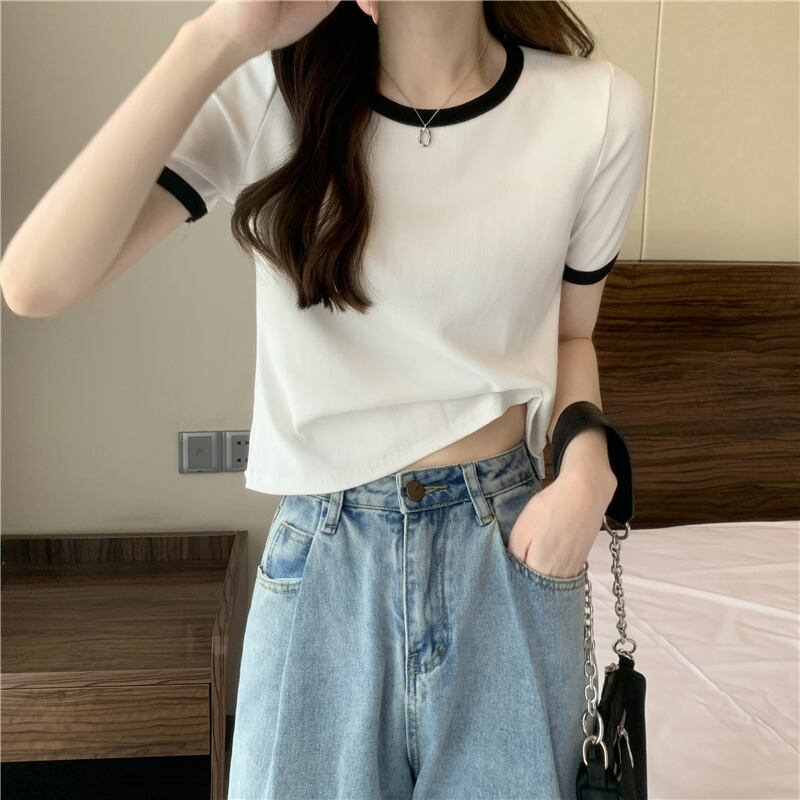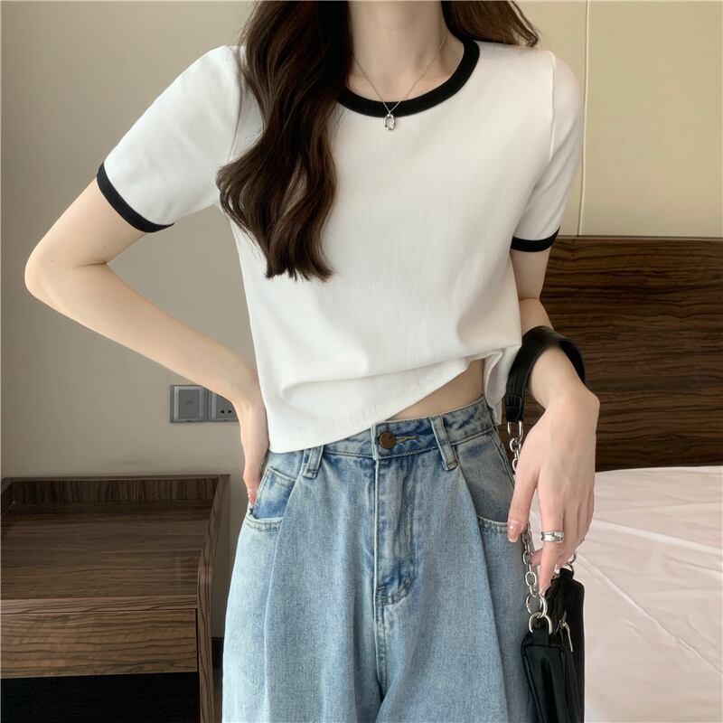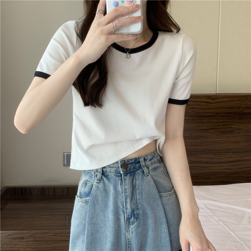 グリーンアイスシルクニットフロントショルダー半袖TシャツレディースサマーハイエンドカジュアルショートトップスリムフィットスリムTシャツ 夏物 7460068880864676 | framboise21