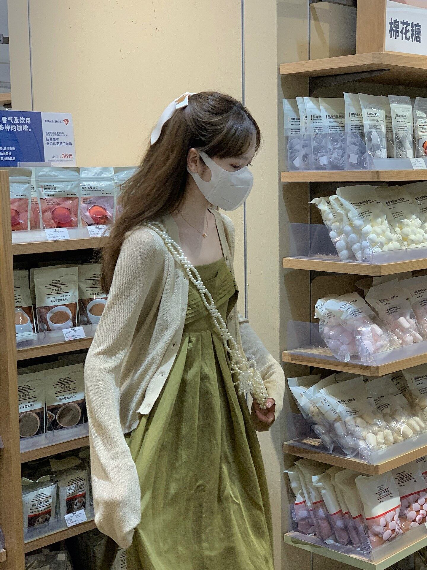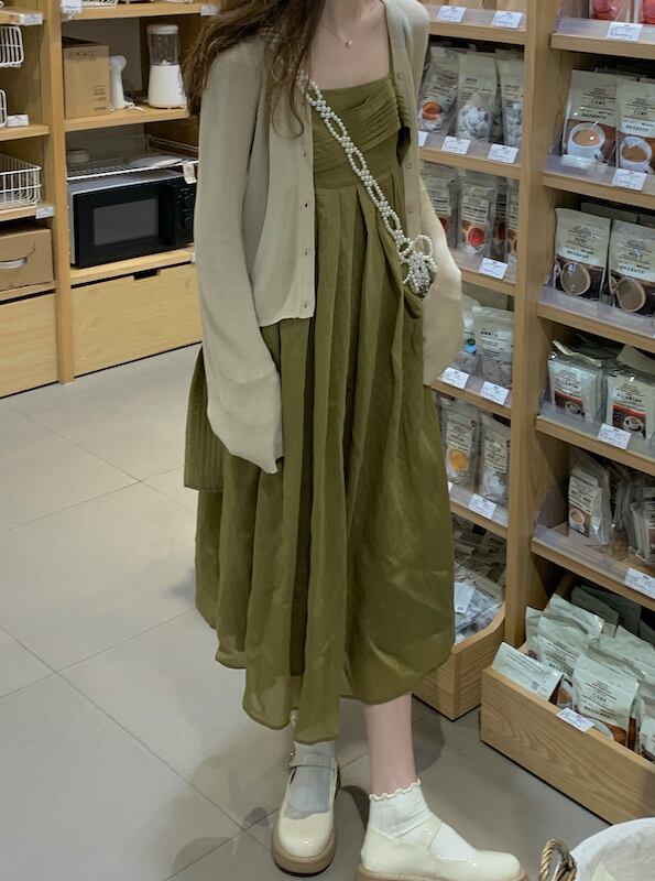 ベルフラワーフレンチレトログリーンサスペンダードレスレディースサマーツーピースデザインスモールミディアムロングセンシリーズ 夏物 フラワーデザイン 7460072560059681 | framboise21