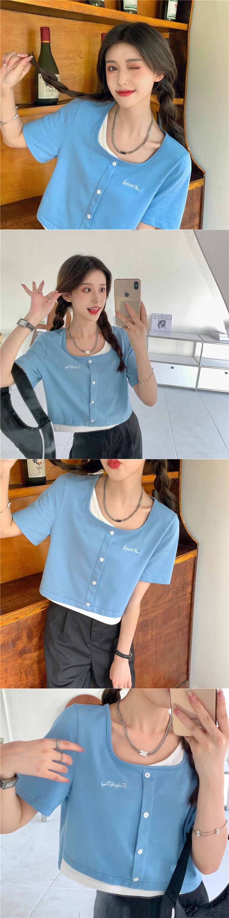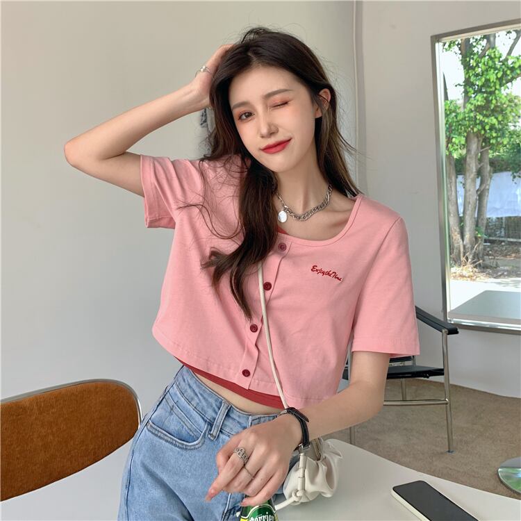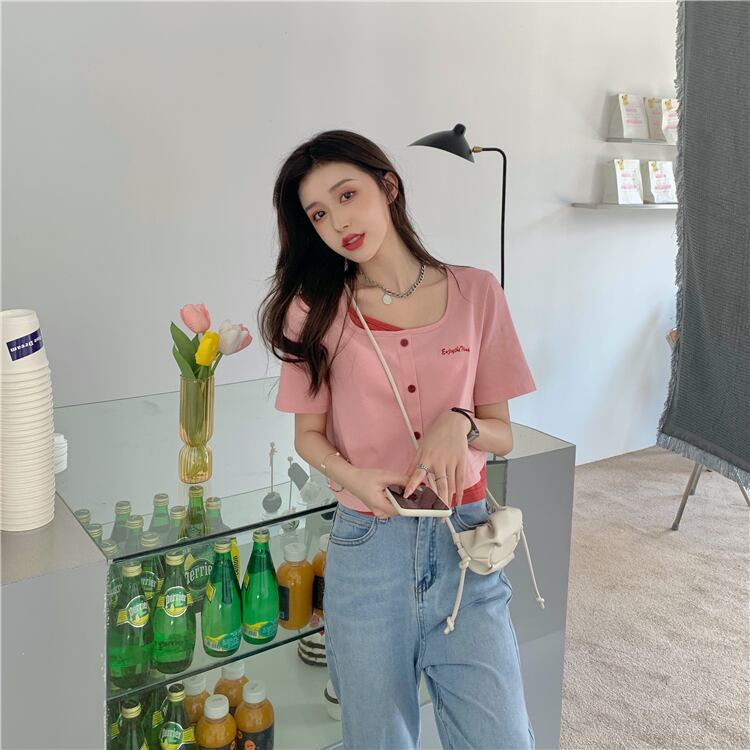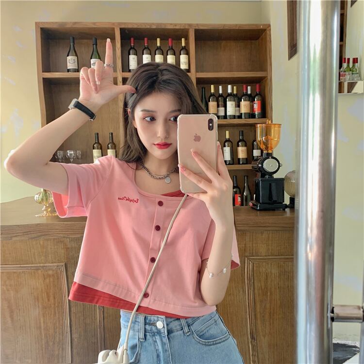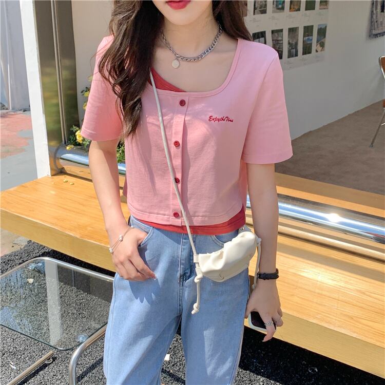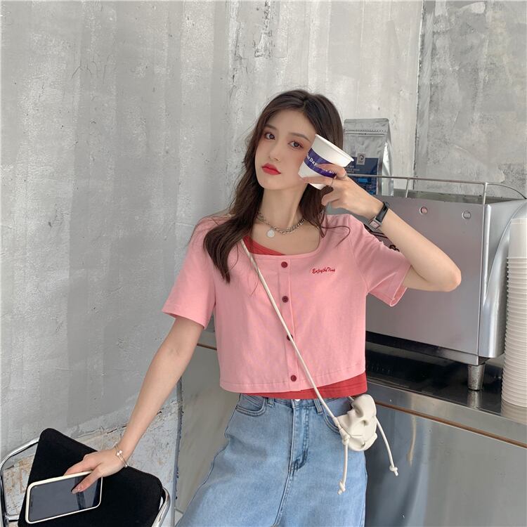 2022年の新しい女性の甘くてスパイシーなショートトップサマーデザインニッチフェイクツーピース半袖Tシャツトレンド 大人ガーリー スウィート キュート カジュアル 夏物 7460022295166453 | framboise21