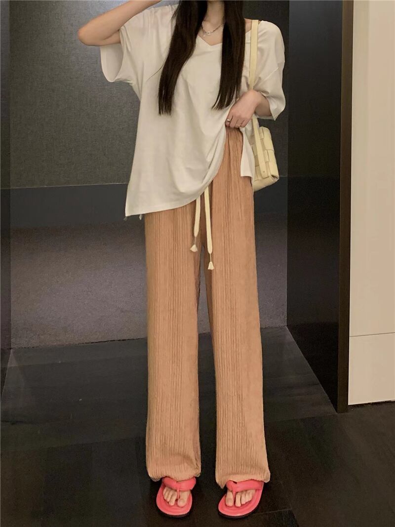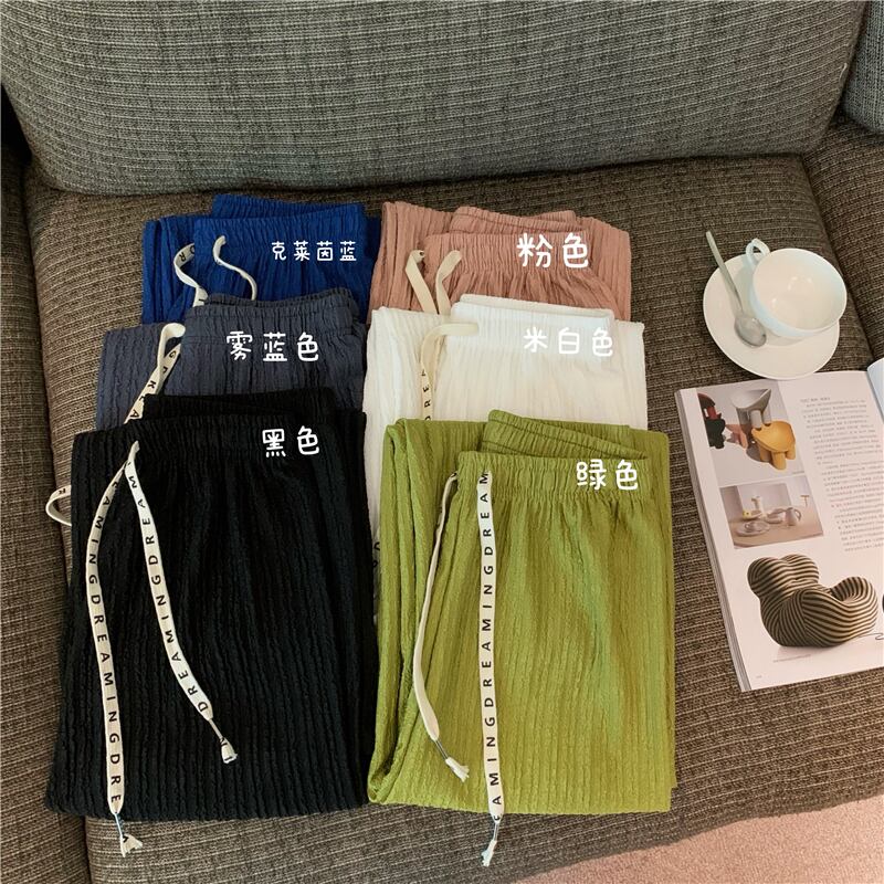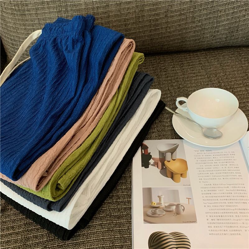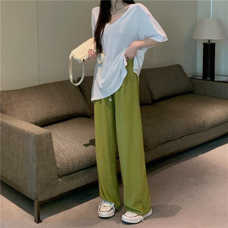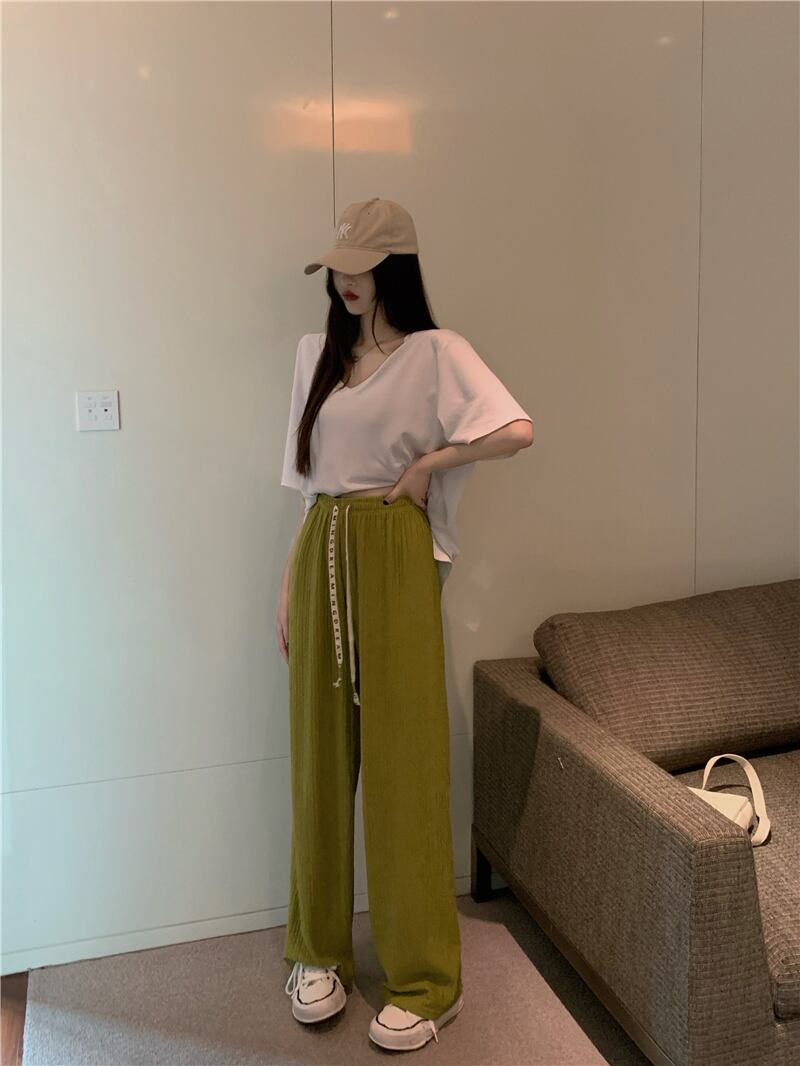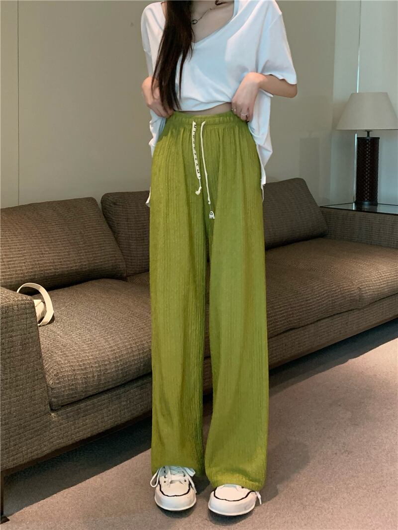 アボカドグリーンワイドレッグパンツレディースサマー薄切片ハイウエスト垂れ下がるスモールストレートルーズモップパンツインタイド ハイウェスト 夏物 7460031783769348 | framboise21