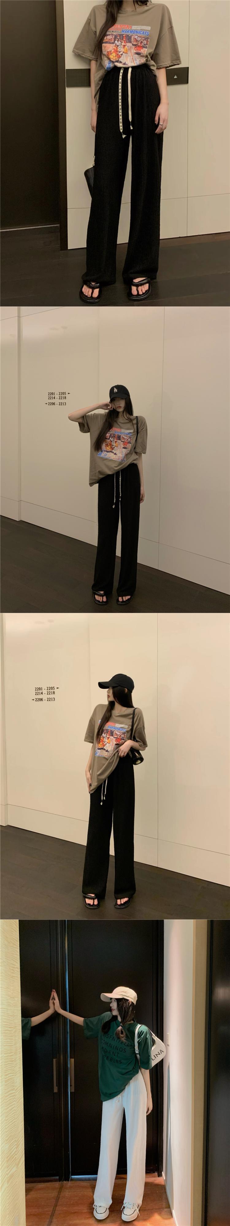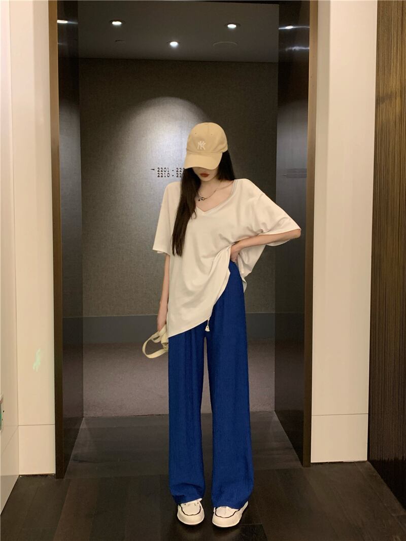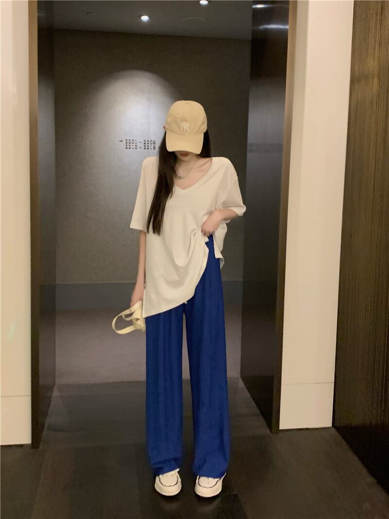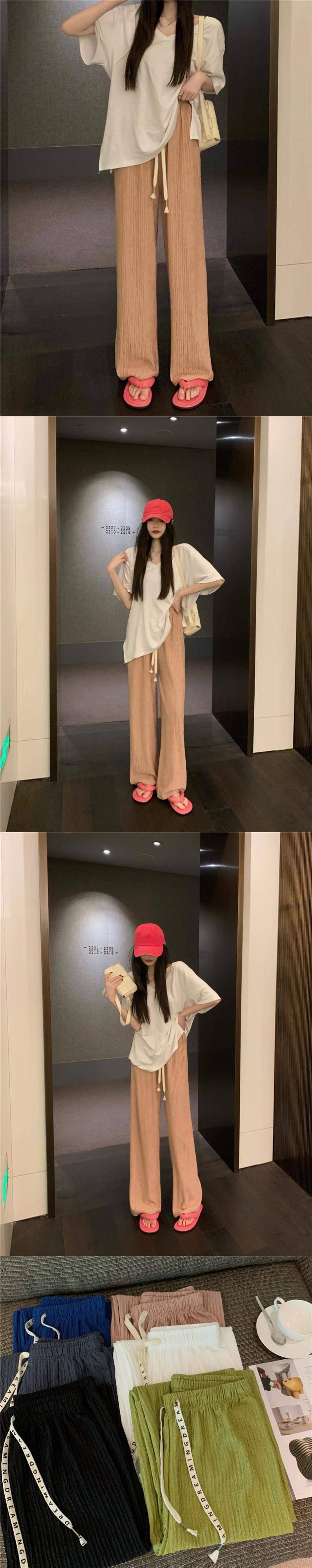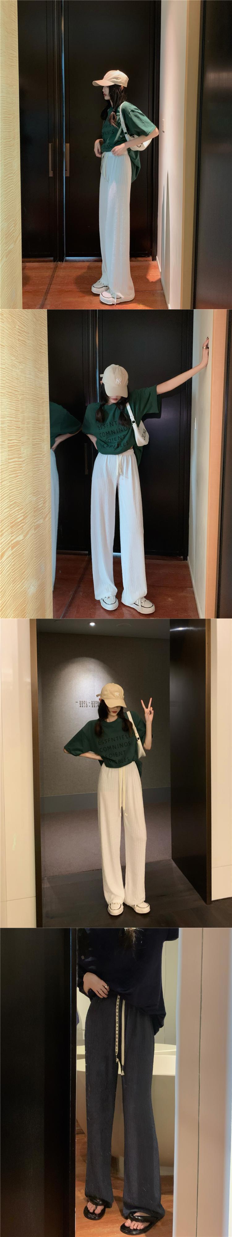 アボカドグリーンワイドレッグパンツレディースサマー薄切片ハイウエスト垂れ下がるスモールストレートルーズモップパンツインタイド ハイウェスト 夏物 7460031783769348 | framboise21