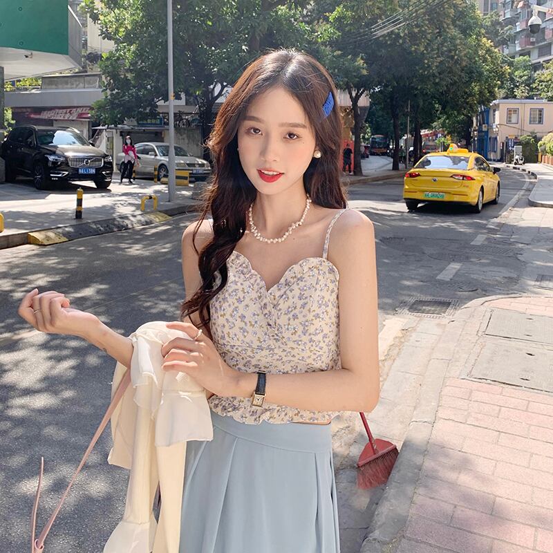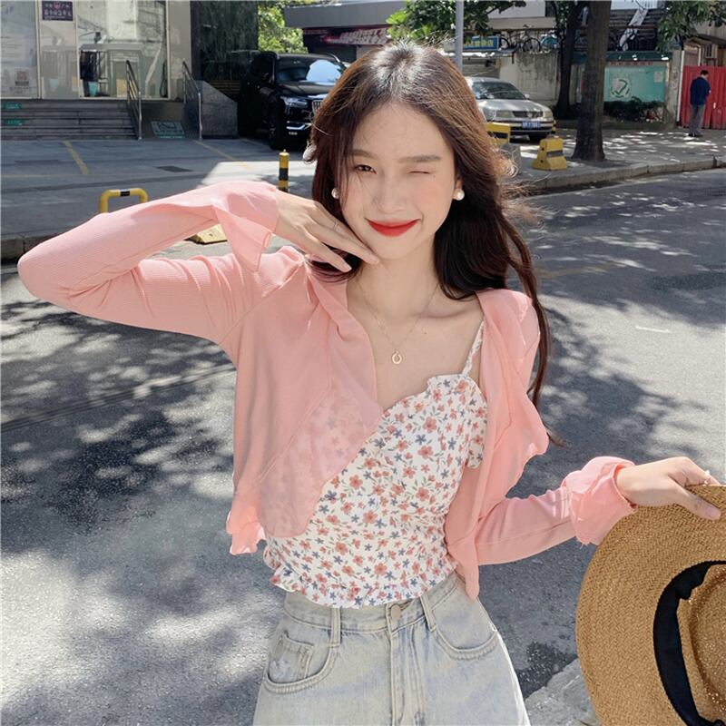 色:青いスリング,ピンクのサスペンダー,アプリコットカーディガン,ピンクのカーディガン