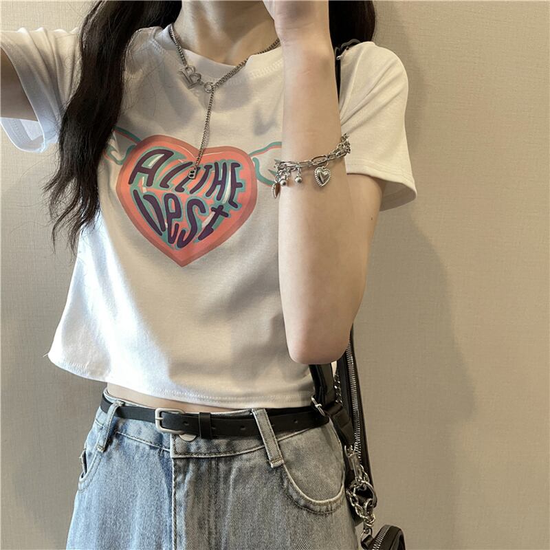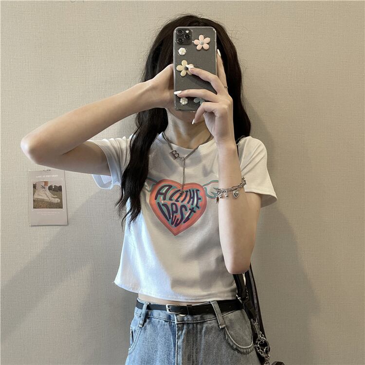 白いTシャツの女性の半袖2022年の新しい夏のハイウエストの薄いセクションが露出したへそbm風ショートトップイン潮を愛する ホワイト サマー 夏物 7460093793502784 | framboise21