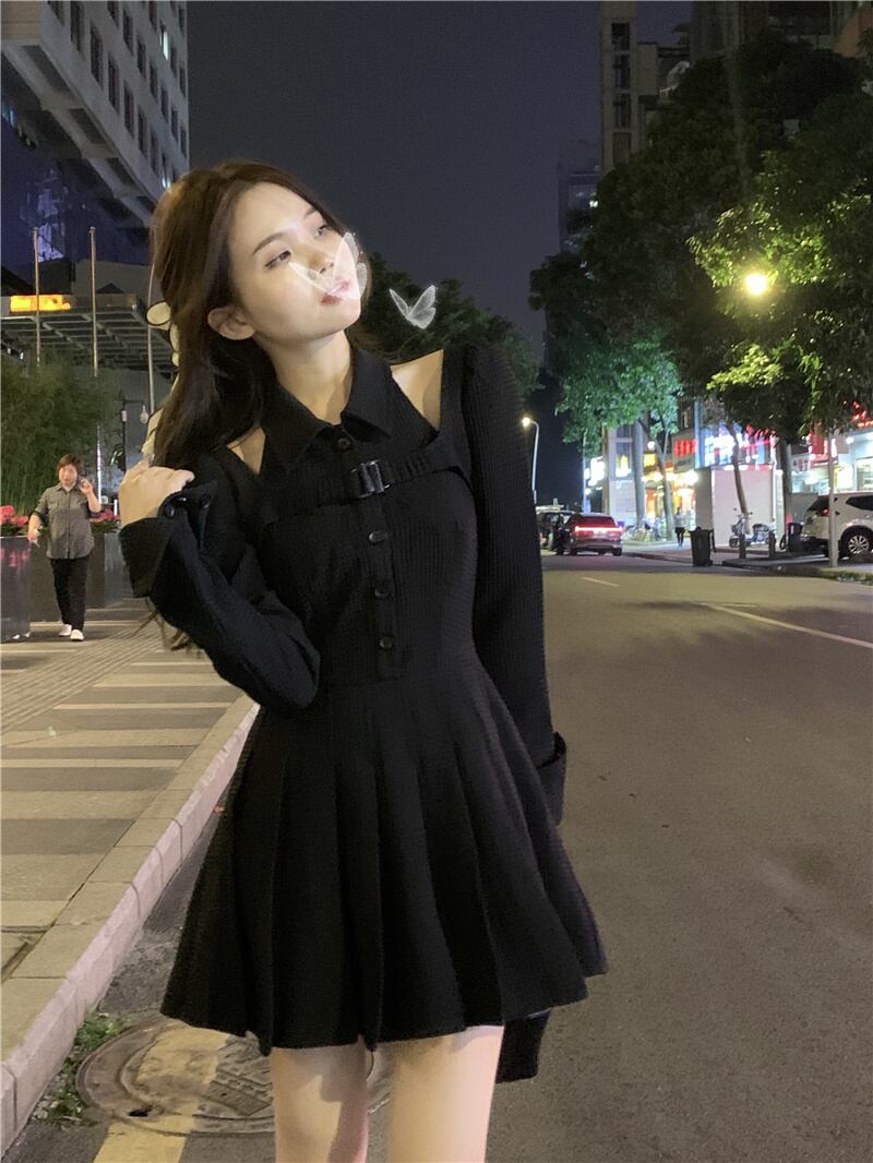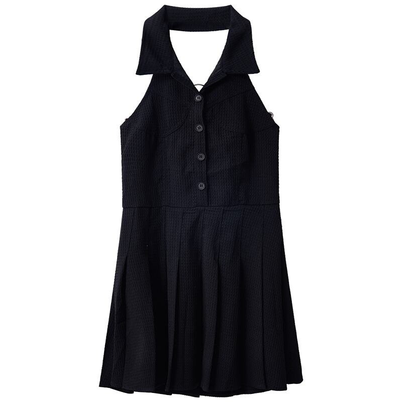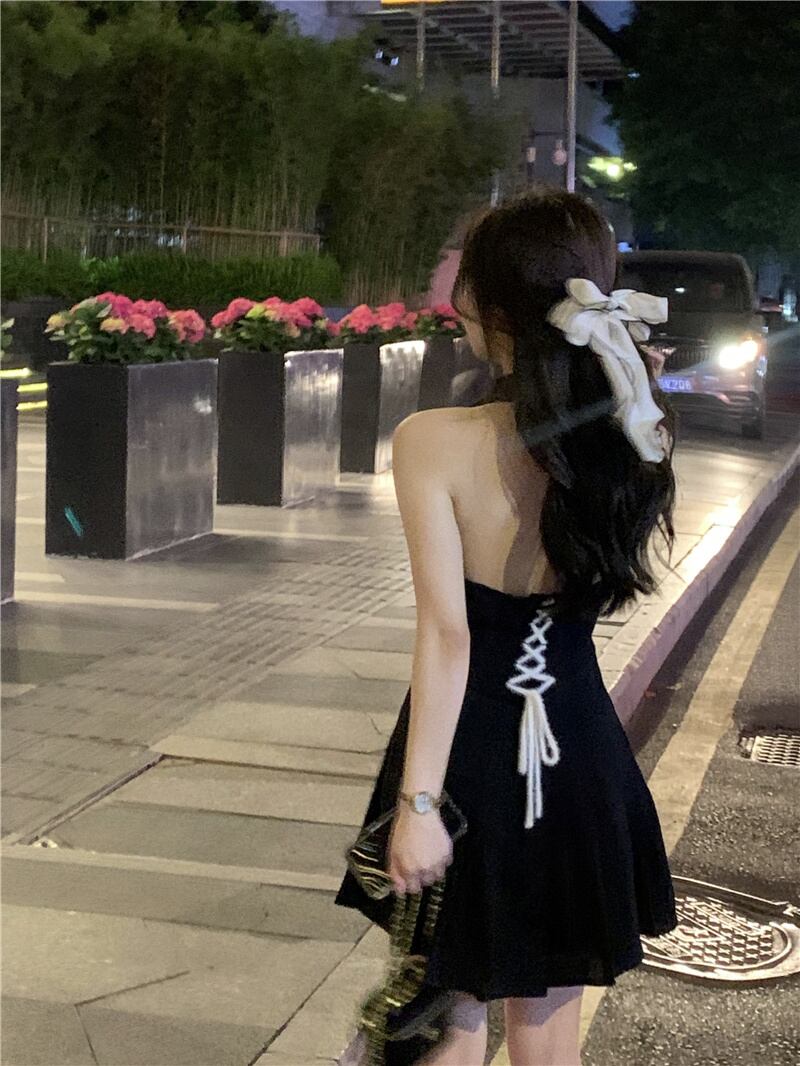 フランスの甘い女の子セクシーな黒のホルタードレス女性の夏のハイデザインセンスニッチシックなプリーツスカート ブラック 大人ガーリー スウィート キュート カジュアル サマー 夏物 7460029689928281 | framboise21