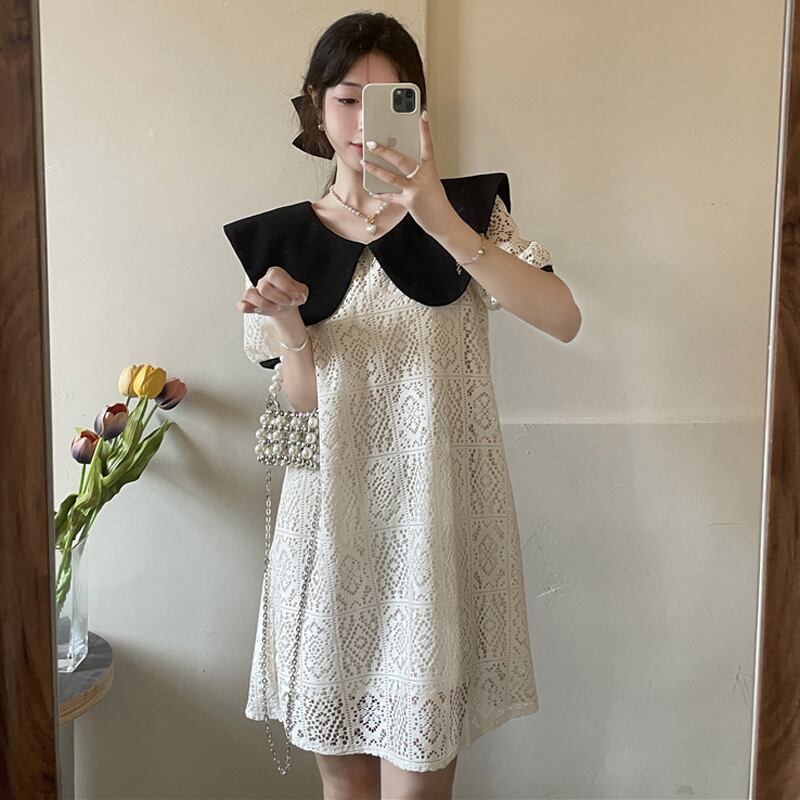 ドールカラーチェーンリンクレースワンピース2022年夏ウィメンズツーウェアセンス薄手の半袖スカートイン ショート ハーフスリーブ サマー 夏物 7460047798020437 | framboise21