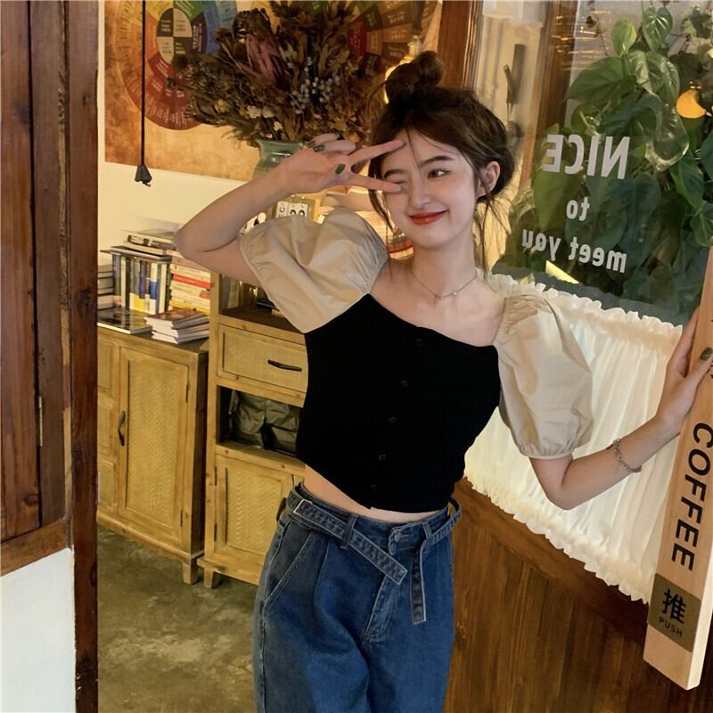 甘くてスパイシーなスクエアネックパフスリーブシャツレディースセンセーションニッチレトロフレンチスリムスリムシンシックショートトップサマー 大人ガーリー スウィート キュート カジュアル 夏物 スクウェア 7460011112966044 | framboise21