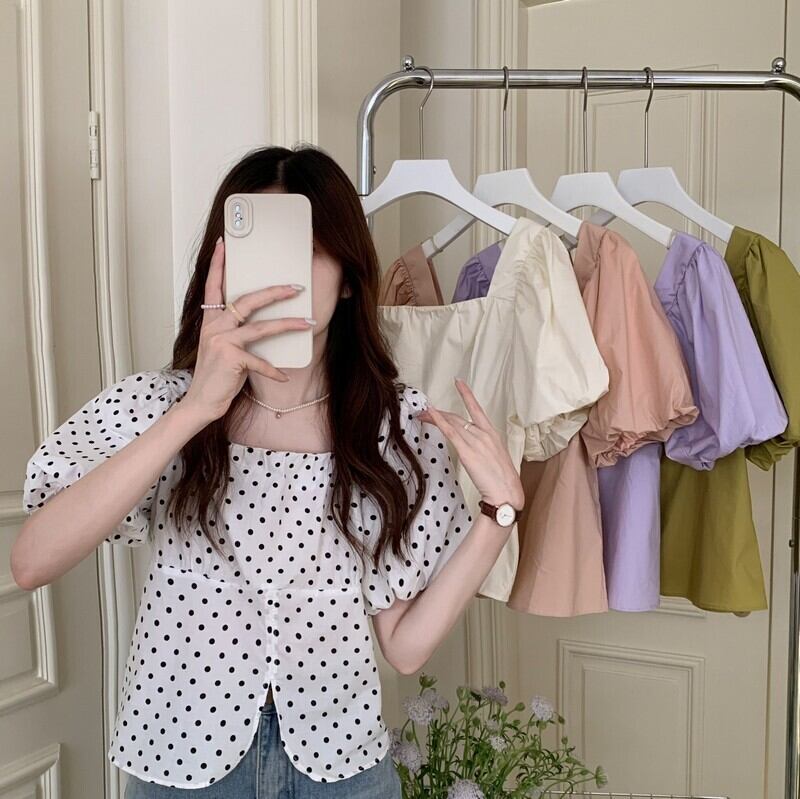 スクエアネックバブル半袖シャツレディースサマーニッチスリットシックスウィートスウィートスモールシャツウエストショートトップ ハーフスリーブ 大人ガーリー キュート カジュアル 夏物 スクウェア 7460091606230079 | framboise21