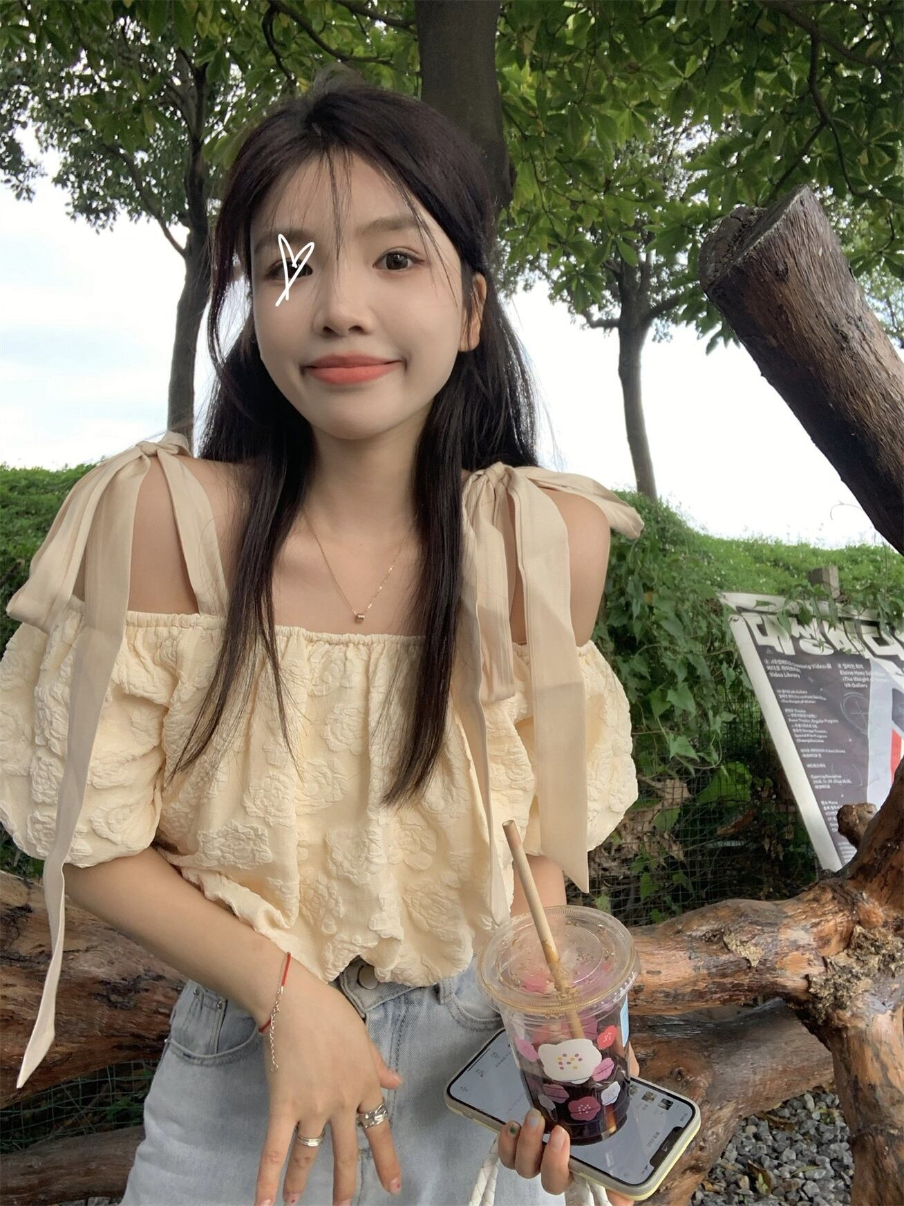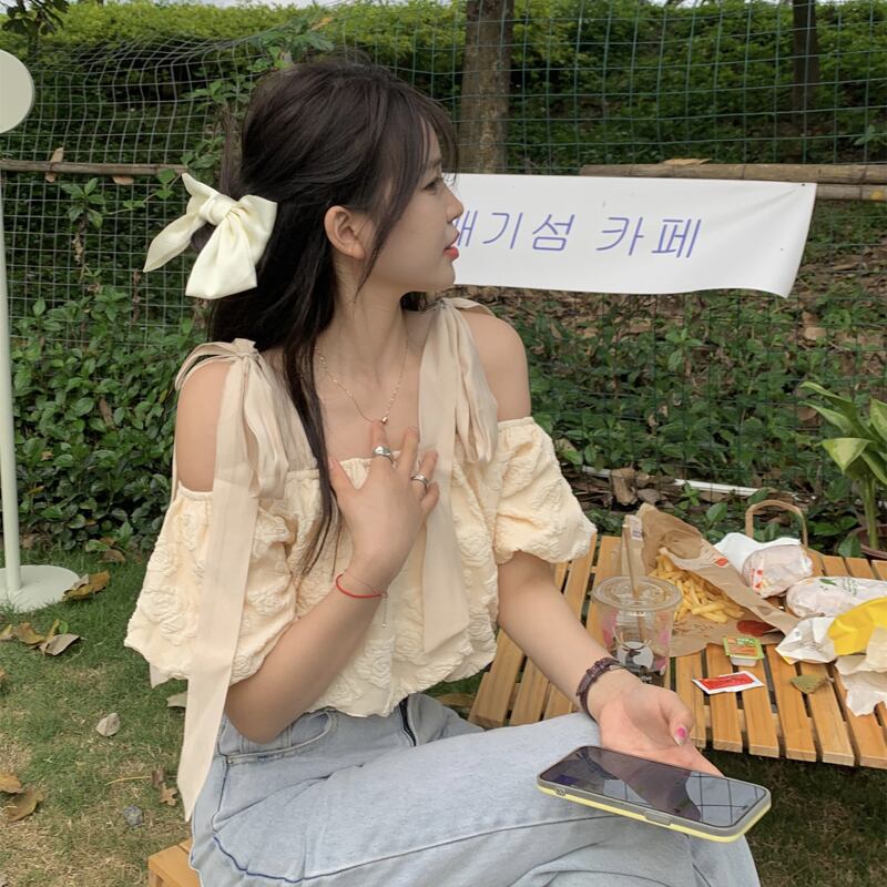 フレンチワンショルダーパフ半袖シャツフェアリーデザインニッチサマードレススウィートオフショルダートップシックカラーボーン 大人ガーリー キュート カジュアル 夏物 7460080141738921 | framboise21