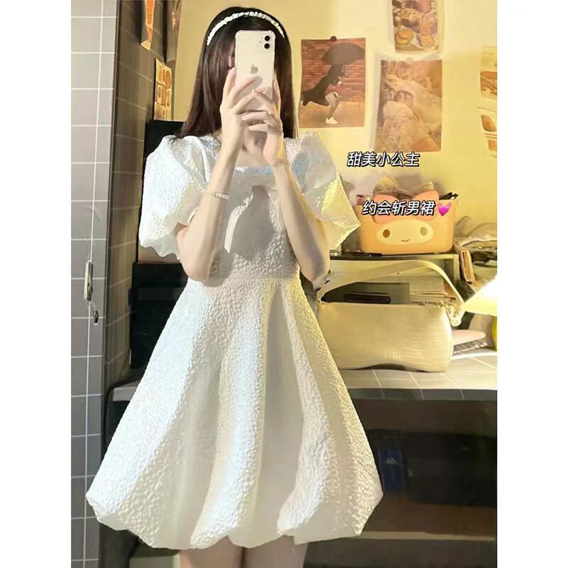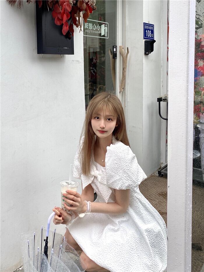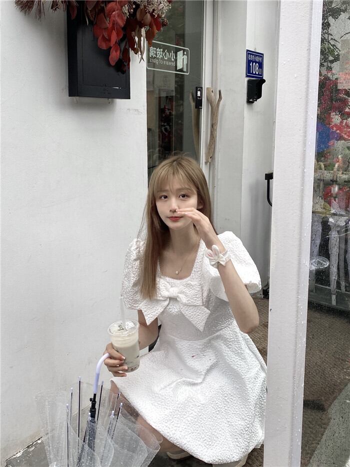 甘いミルクティーブレイクフランス初恋小さなスーパーフェアリー森ラインウエストパフスリーブ白いドレス夏 ホワイト 大人ガーリー スウィート キュート カジュアル サマー 夏物 7460059210404132 | framboise21