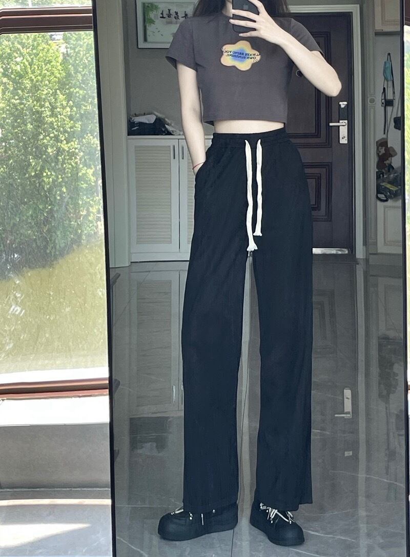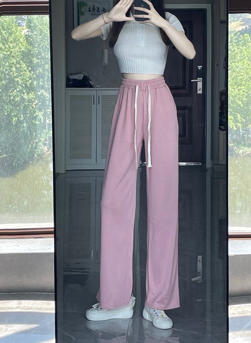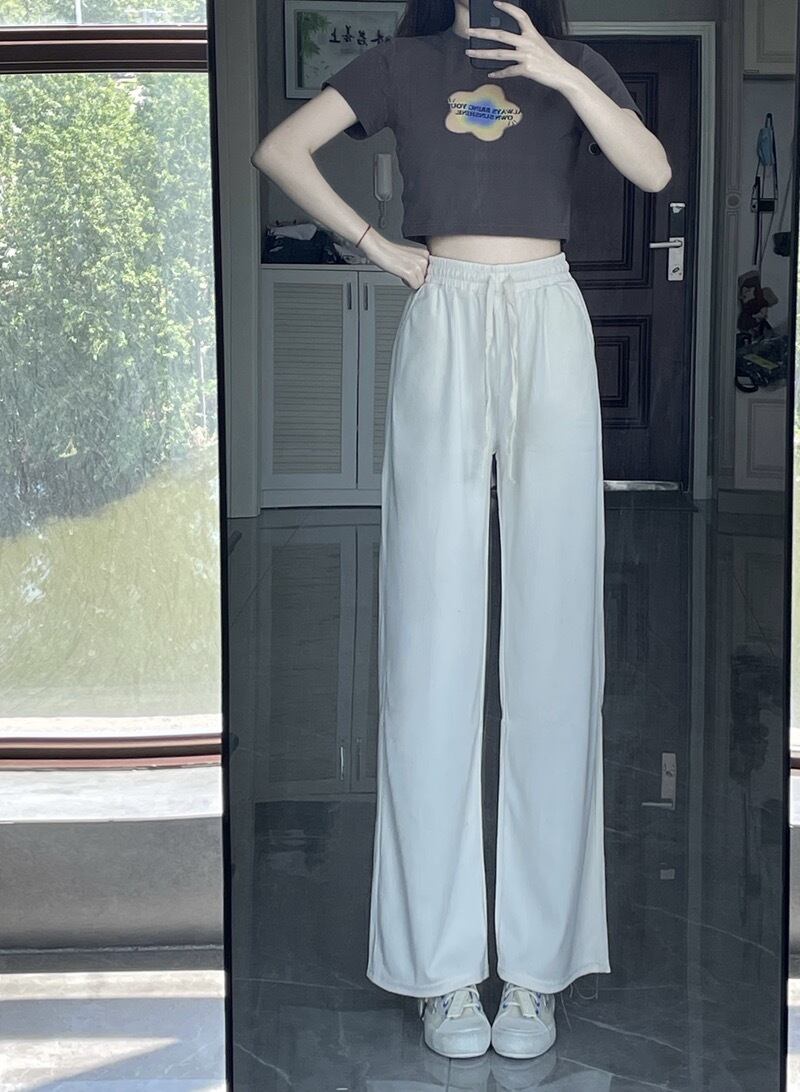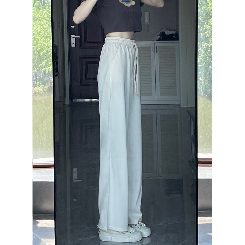 ホワイトワイドレッグパンツレディースサマー薄身ハイウエストスポーツパンツルーズ&シンオールマッチストレートドレープカジュアルパンツトレンド 夏物 7460092610538869 | framboise21