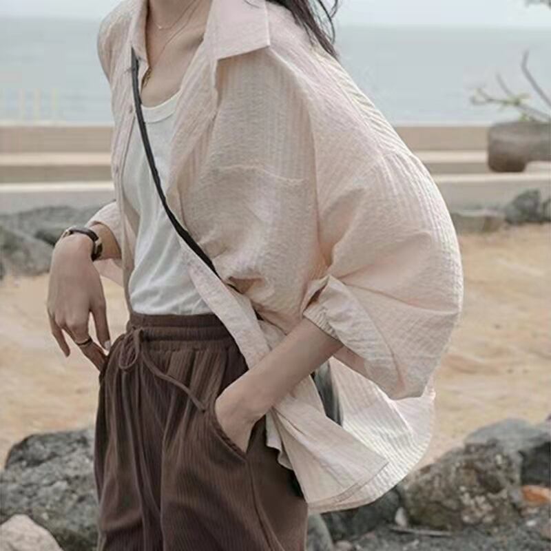 レトロな香港風味のコットンとリネンのシャツの女性の夏の薄いフレンチスタイルの怠惰なルーズなデザインのニッチトップ日焼け止めジャケット レッド サマー 夏物 7460025590192760 | framboise21