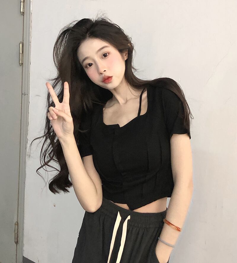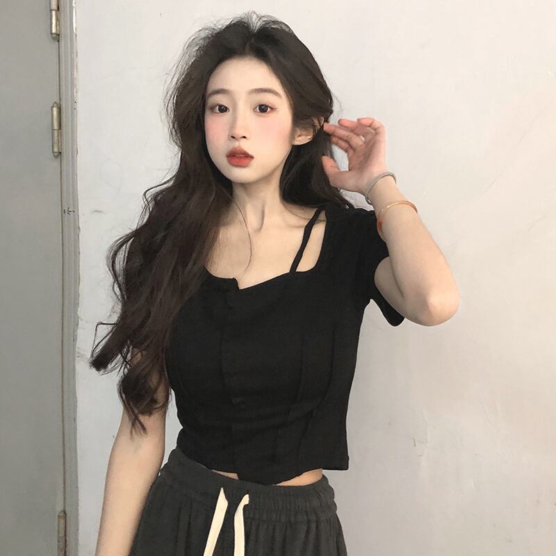 半袖Tシャツレディース2022年夏新作デザインニッチボトミングシャツフロントショルダースクエアカラーショートトップ サマー 夏物 スクウェア 7460067605669556 | framboise21