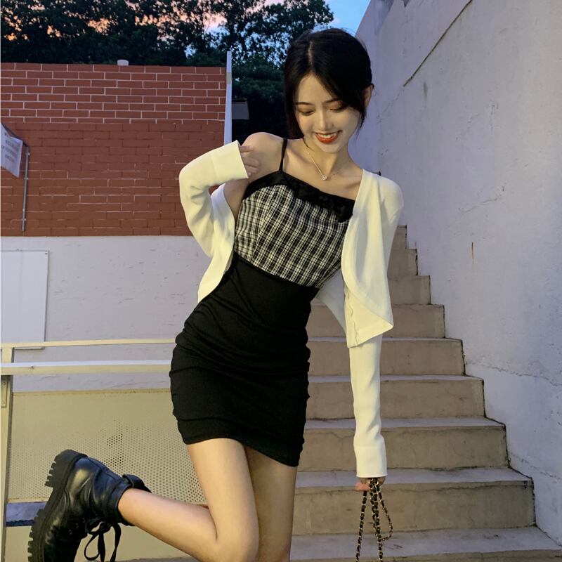 黒の格子縞のドレスの女性の夏のセクシーなサスペンダースカート純粋な欲望スタイルのデザイン薄片ヒップスカートトレンド ブラック サマー 夏物 ピュア 7460088277318720 | framboise21