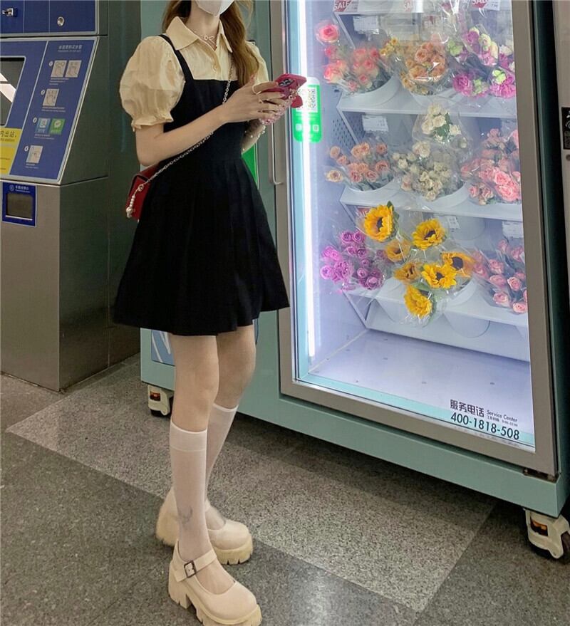 カレッジスタイルのフェイクツーピーススカート初恋デートリトルブラックドレスストラッププリーツドレススモールスウィートでスパイシーな夏 大人ガーリー キュート カジュアル サマー 夏物 7460058499401606 | framboise21