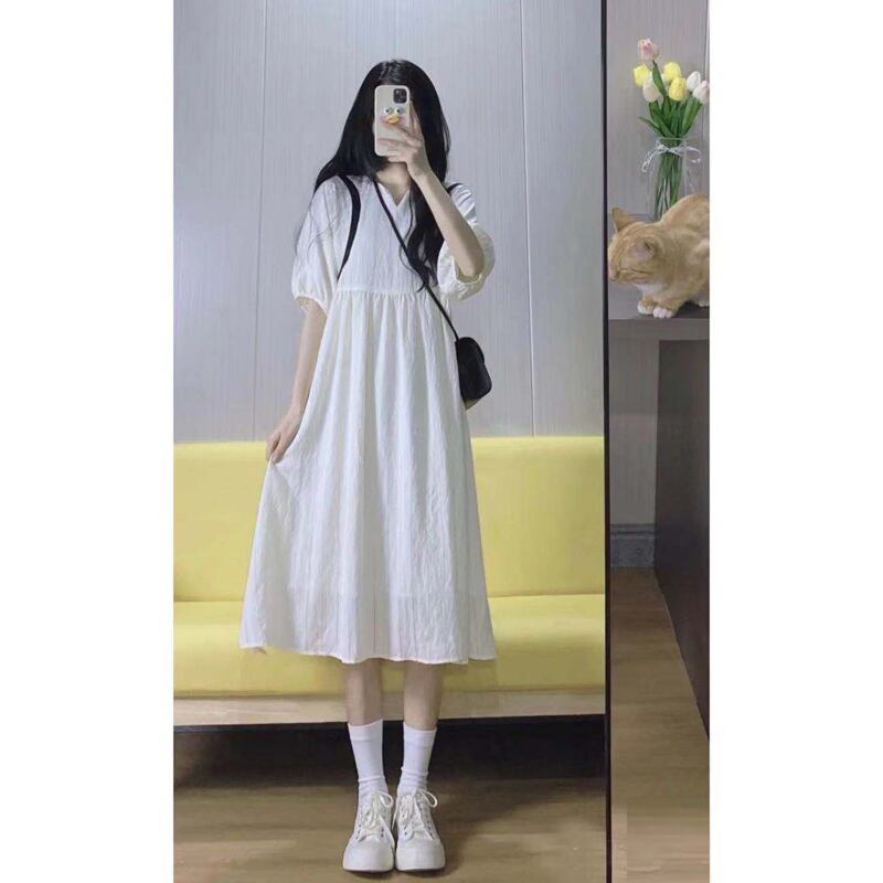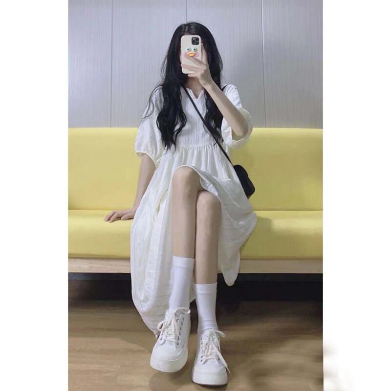 フランスの白いドレス2022新しい夏のウエストバブル半袖穏やかな風初恋妖精シャツスカート ショート ホワイト ハーフスリーブ サマー 夏物 7460034862524141 | framboise21
