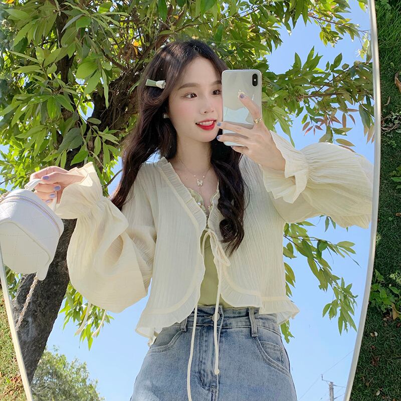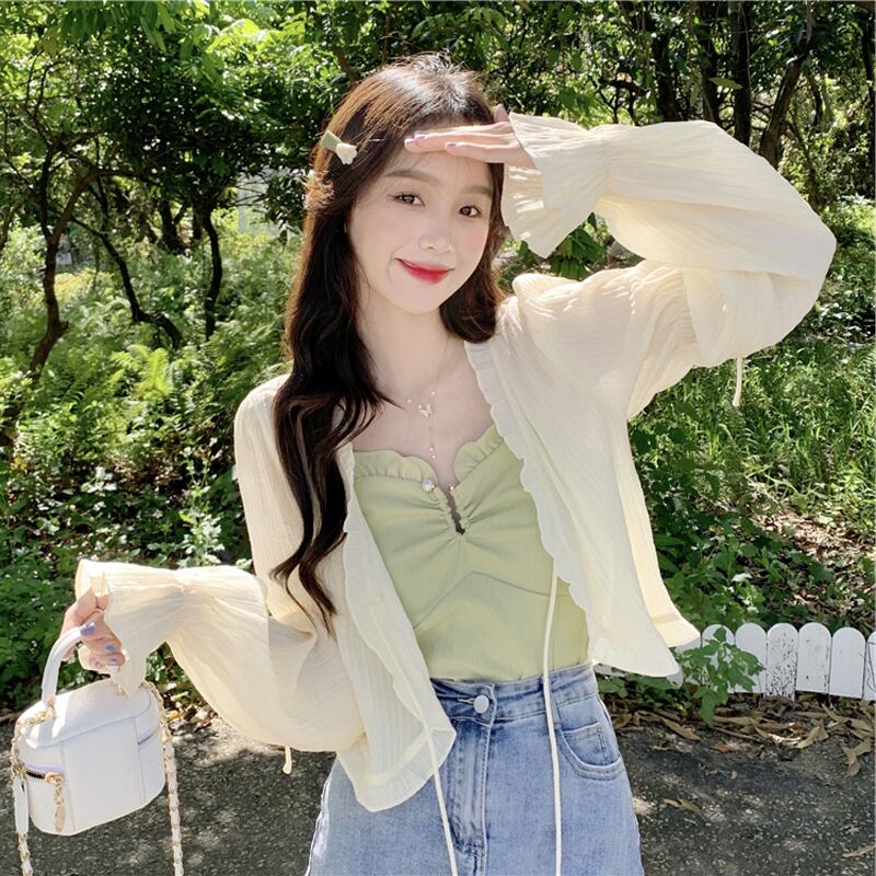 スーパーフェアリーシフォンサンスクリーンカーディガンレディースサマー薄手のショートトップ、サスペンダースカートと小さなショールエアコンシャツ 夏物 7460030783904508 | framboise21