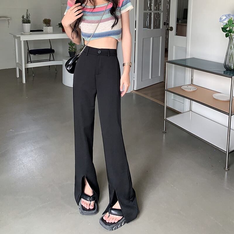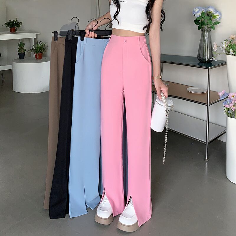 ピンクのスーツパンツ女性の2022年の新しい夏の薄いセクション高品質のスプリットストレートチューブドレープモッピングブルーワイドレッグパンツ サマー 夏物 7460086066817591 | framboise21