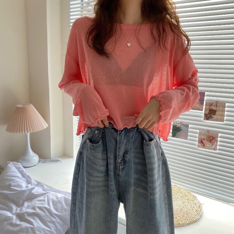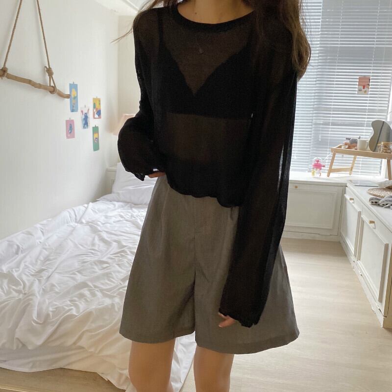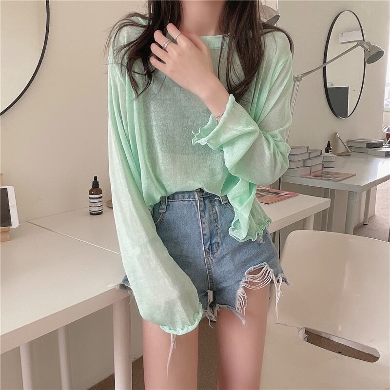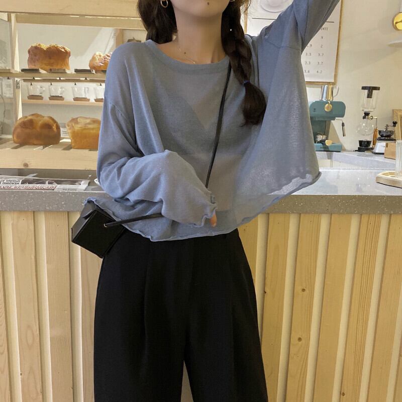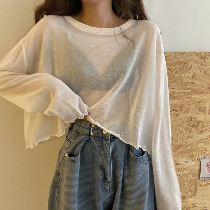 アイスシルクセーター女性の夏の薄いセクションの視点白い長袖Tシャツバージョンルーズサンスクリーンブラウスショートトップ ロング ホワイト サマー 夏物 7460057659357689 | framboise21