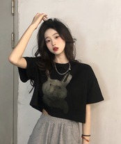 アメリカの漫画印刷黒のショートTシャツレディースコットン半袖ルーズハイウエストへそシックな香港風味のトップサマー レッド ブラック 夏物 7460035992172250