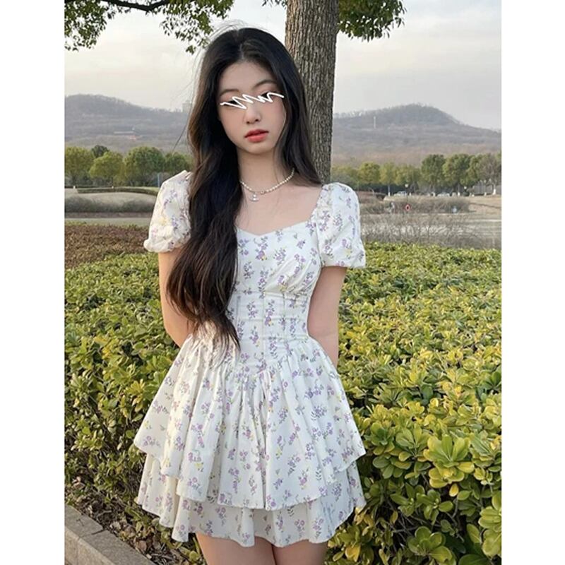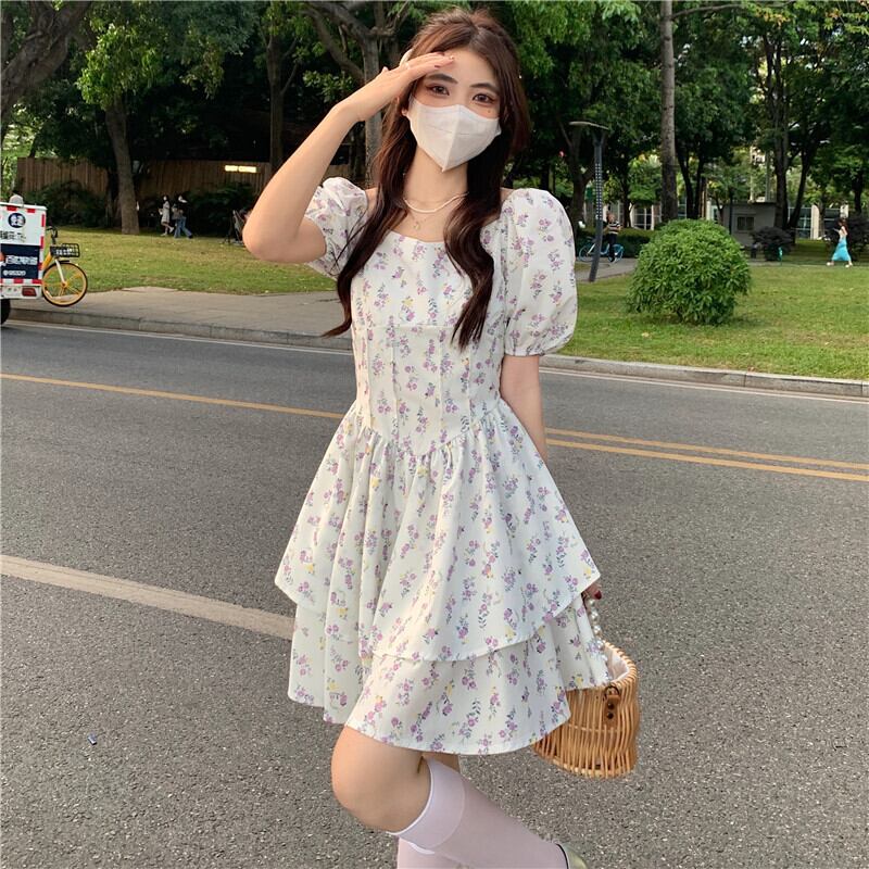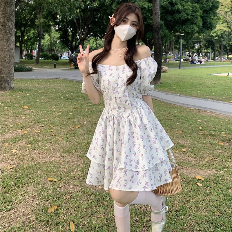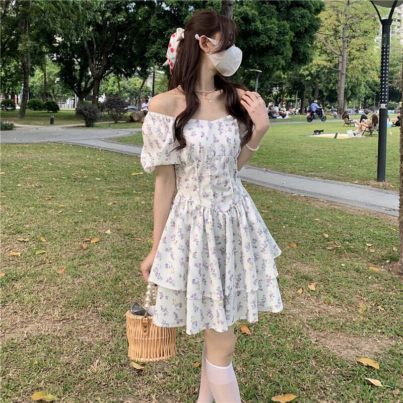 ウエストワンワードカラーパフスリーブふくらんでいるプリンセスドレス22春と夏の新しいzhizhiブドウブドウ穏やかに壊れた花 スプリング 春物 サマー 夏物 フラワーデザイン 7460099794869938 | framboise21