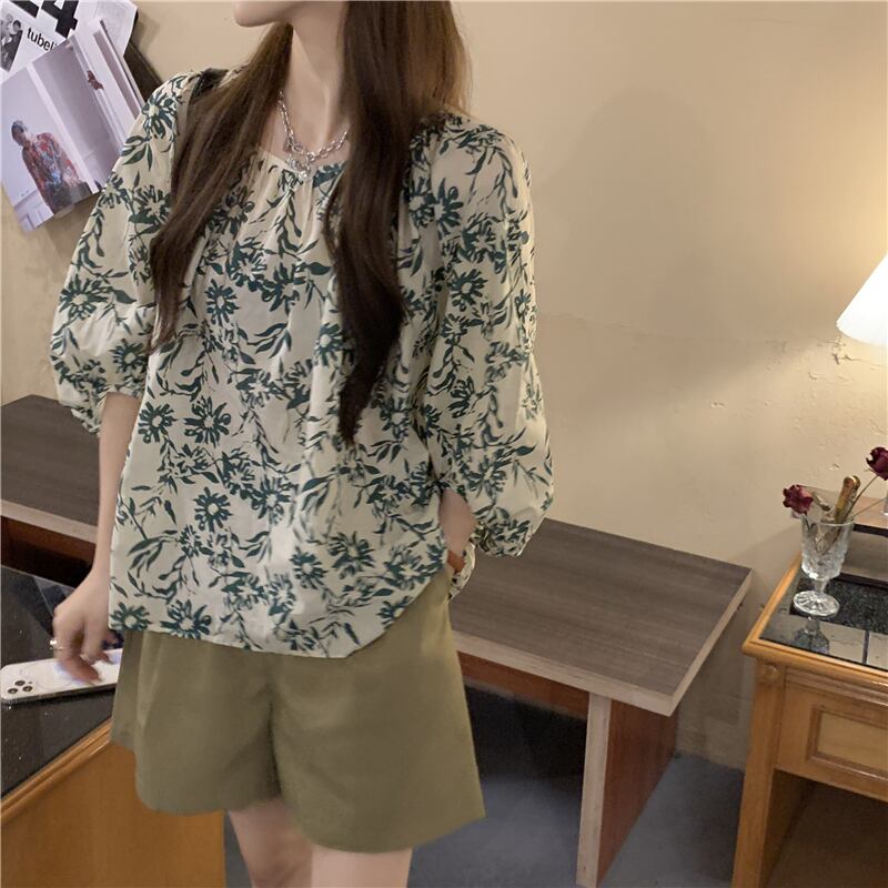 レトロフローラルシャツレディースデザインセンスニッチフレンチシックランタンスリーブルーズ気質スウィートベイビーシャツトップ 大人ガーリー キュート カジュアル 花柄 7460089160535747 | framboise21