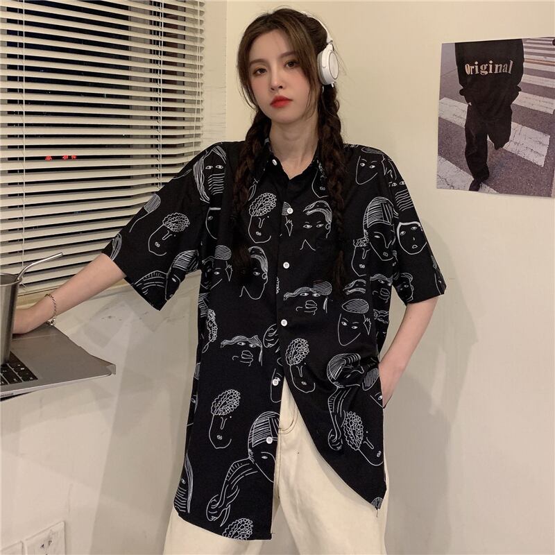 レトロプリントウエスタンスタイルシャツレディースサマーシフォントップルーズラージサイズオールマッチ半袖シャツの夏新バージョン 大きめサイズ 夏物 7460055424093662 | framboise21