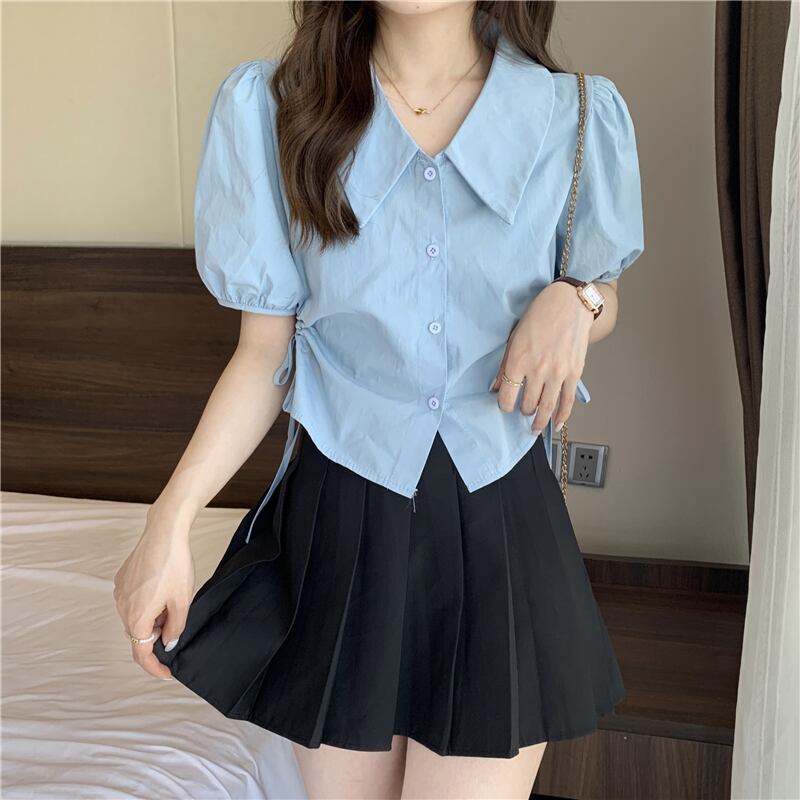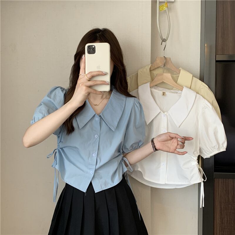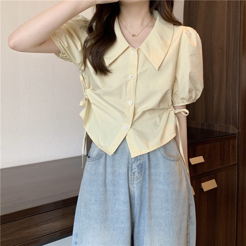 パフスリーブシャツレディースサマーシンシックジャケットショートドローストリングウエストスモールフレンチショートスリーブトップ 半袖 ハーフスリーブ 夏物 7460019016200467 | framboise21