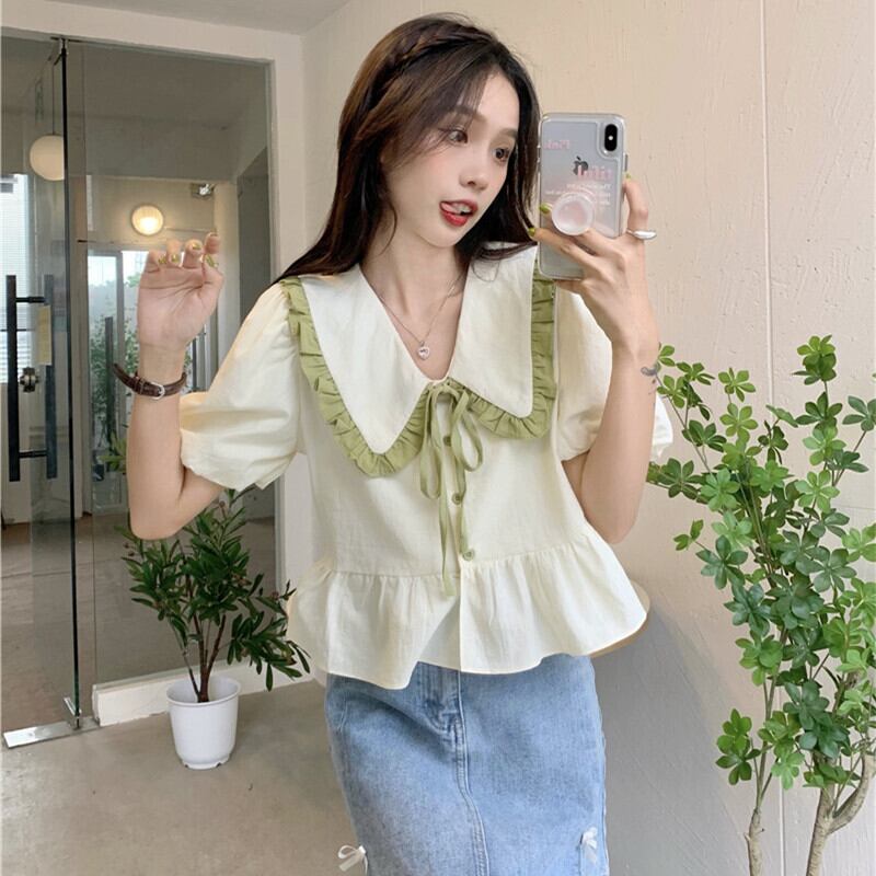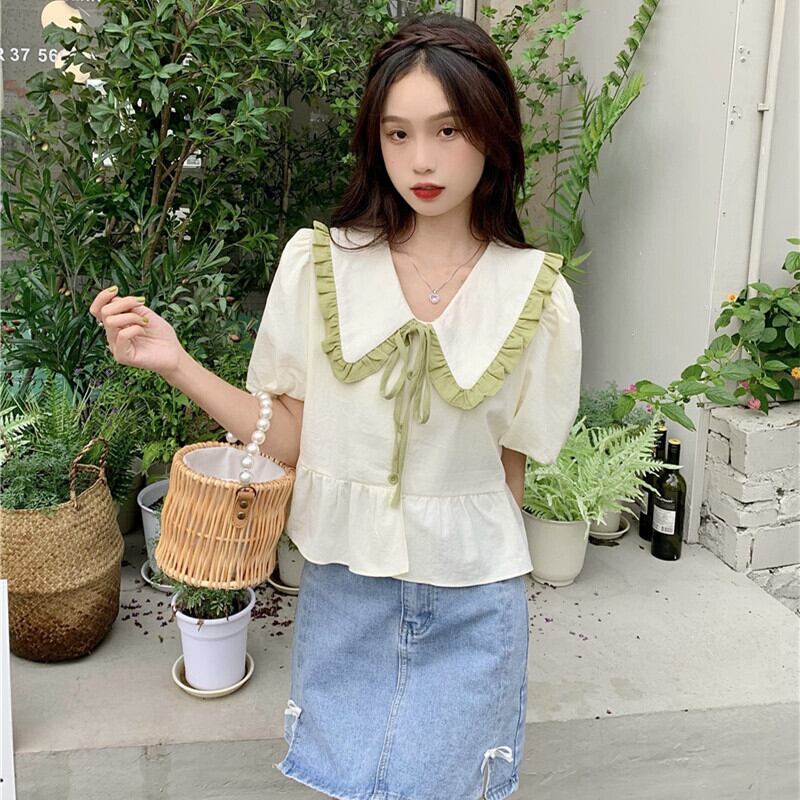 フランスの甘い蝶ネクタイ人形の襟のシャツ女性の夏のデザインニッチシックなショートパフスリーブトップ リボン 大人ガーリー スウィート キュート カジュアル サマー 夏物 7460060732232053 | framboise21