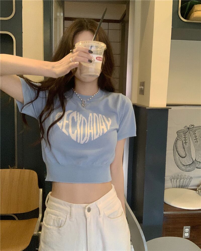 フロントショルダー半袖Tシャツレディース2022年夏新しい甘くてクールなトレンドハイエンドシックなショートトップの女性 大人ガーリー スウィート キュート カジュアル サマー 夏物 7460055745271363 | framboise21