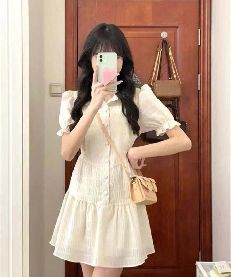 2022年夏お腹を覆い、薄い香港風の白い人形の襟のウエストドレスをシックに見せてくれる新しいラージサイズの婦人服 ホワイト 大きめサイズ サマー 夏物 7460057087831694 | framboise21