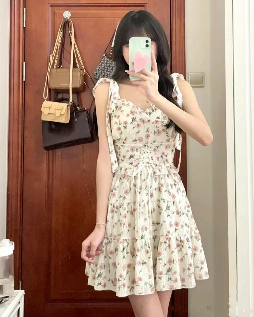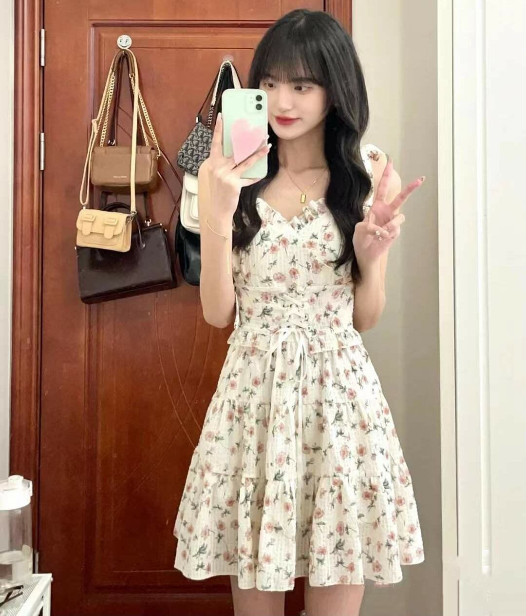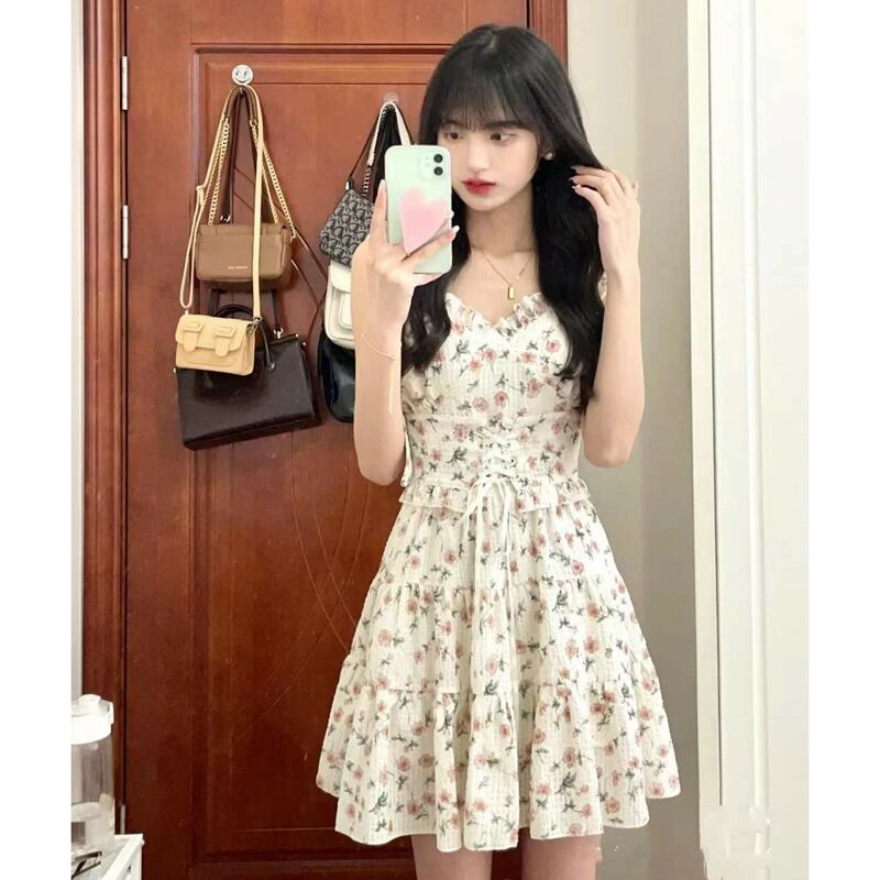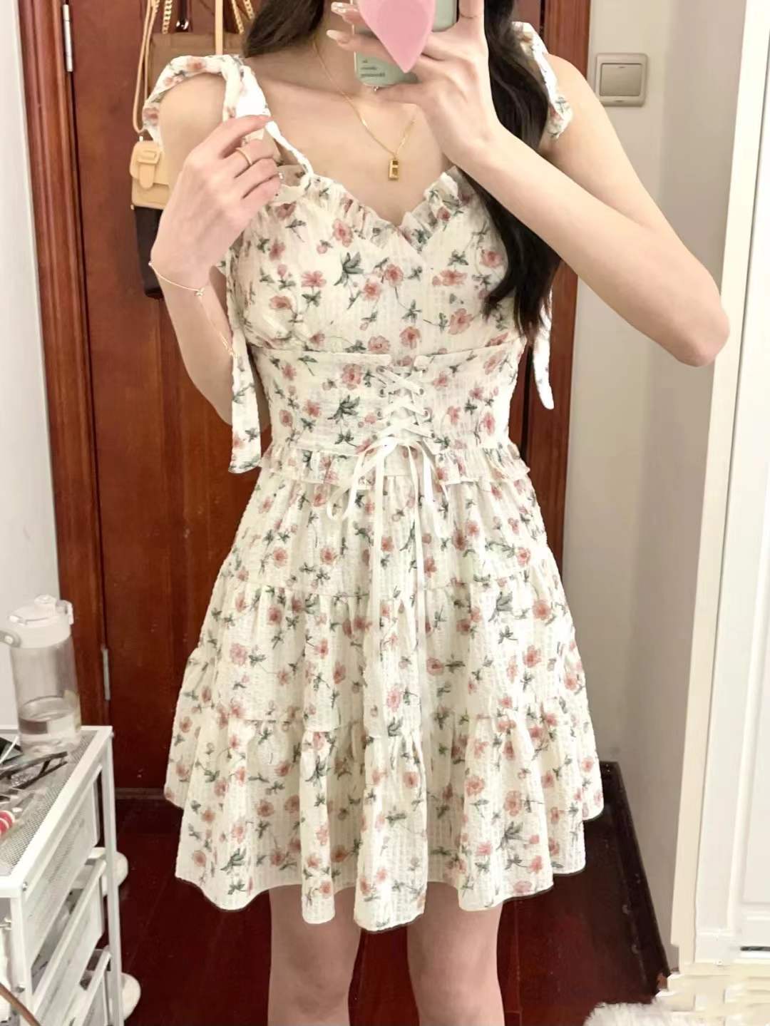 2022年新作スウィートウエストバンドフローラルドレスレディースサマーデザインセンスニッチサスペンダーショートスカートハイエンドセンス 大人ガーリー キュート カジュアル 夏物 花柄 7460084625530459 | framboise21
