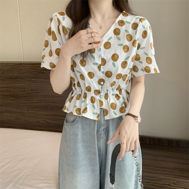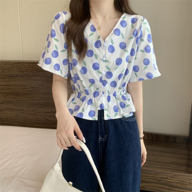 半袖ショルダーシャツレディースサマーフレンチVネックスモールフレッシュでスウィートフローラルユニークなスペシャルウエストショートトップ 大人ガーリー キュート カジュアル 夏物 花柄 7460046711559638 | framboise21