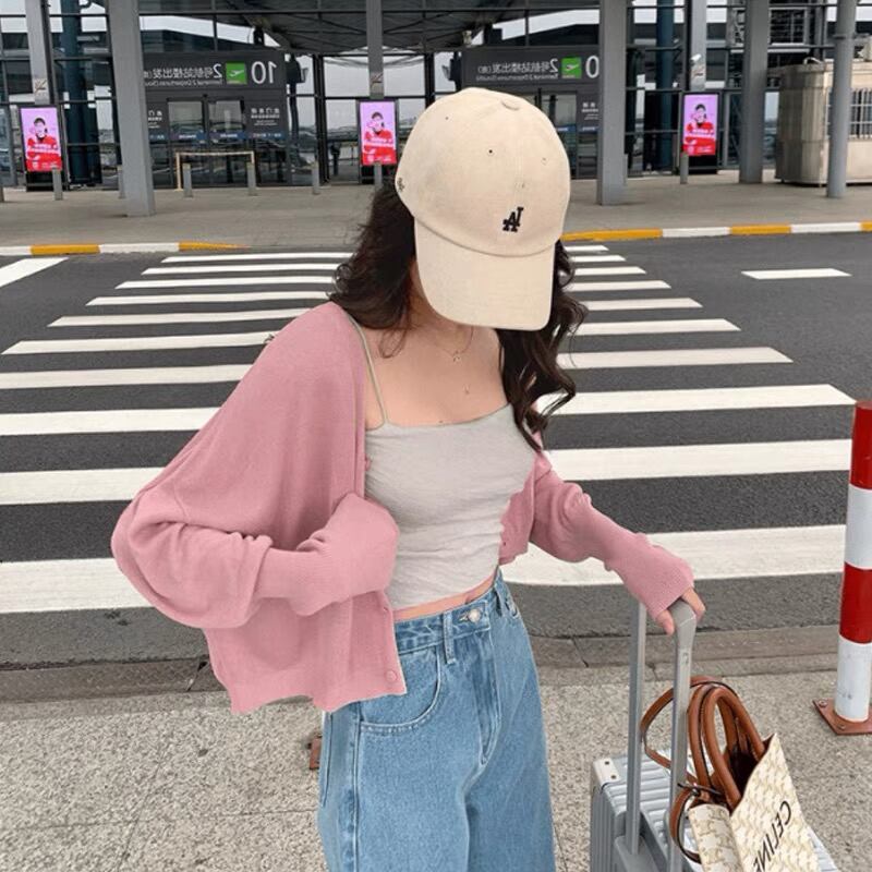 日焼け止めカーディガン女性の夏の薄いセクション、サスペンダースカートアイスシルクニットトップコート付きの小さなショールエアコンシャツ サマー 夏物 746008039935055 | framboise21