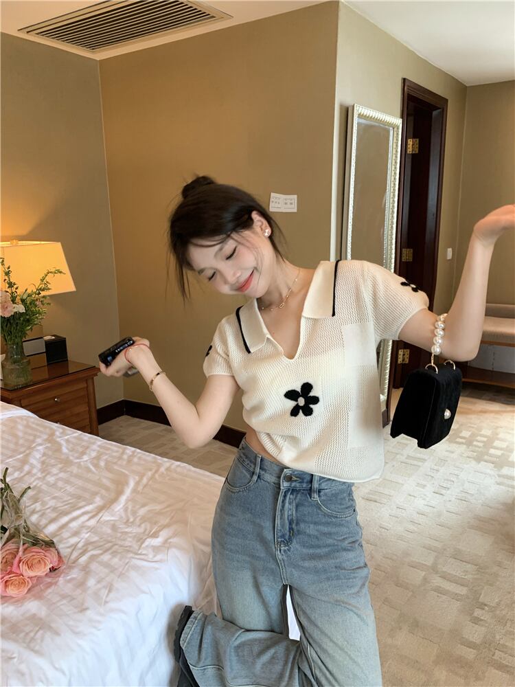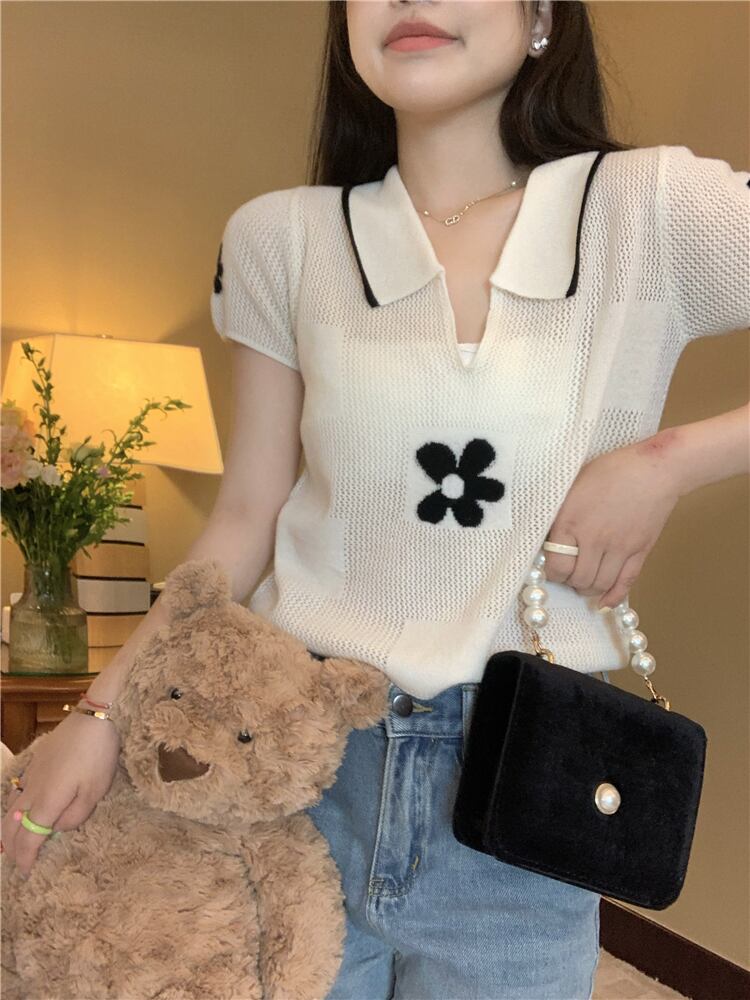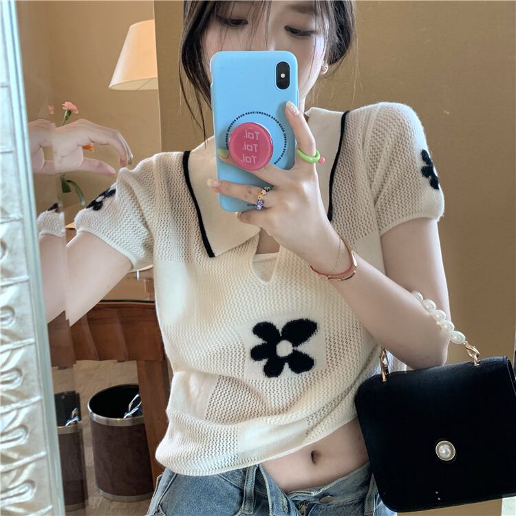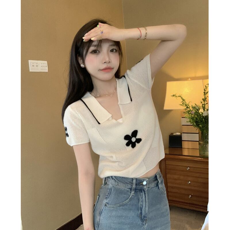 2022年夏の新しい白いフロントショルダー半袖Tシャツイントレンディなニットハイエンドトップデザインセンス女性のニッチ ホワイト サマー 夏物 7460060028428216 | framboise21